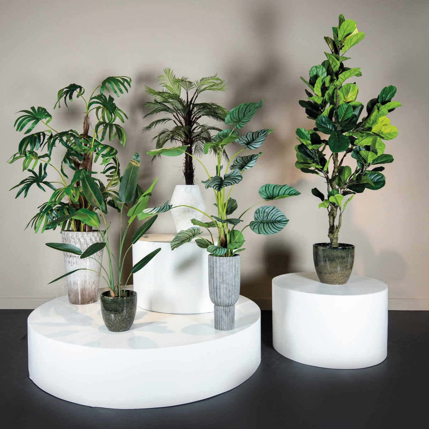A Ficus Lyrata műnövény egy élethű dekoráció, amely élénk színeivel, és szerte ágazó megjelenésével garantáltan feldob bármilyen helyiséget, vagy teret. A részletgazdag kialakítás miatt tökéletes mása az igazi lantlevelű fikusznak. Nem igényel gondozást, és könnyedén áthelyezhető bármely szobába.