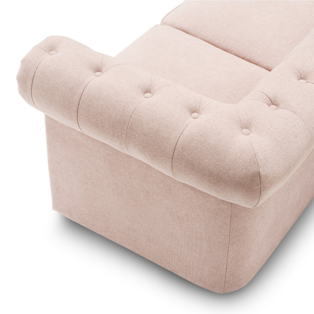 Az Arthur kanapé egy kapcsolat a múlttal, hiszen a gombos varrása, és a fa lábai ötvözik a kényelmet a 19. századi bútorokkal. A puha szövet ülés rendkívül elegáns megjelenést és időtlen vonzerőt kölcsönöz neki. A 198x77x70 cm-es Arthur kanapé lágy rózsaszín, és semleges bézs színekben kapható.