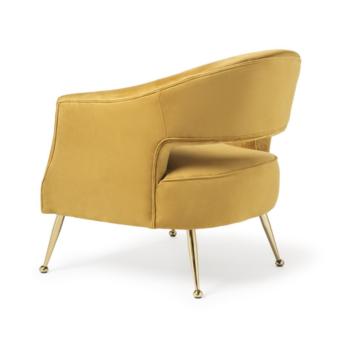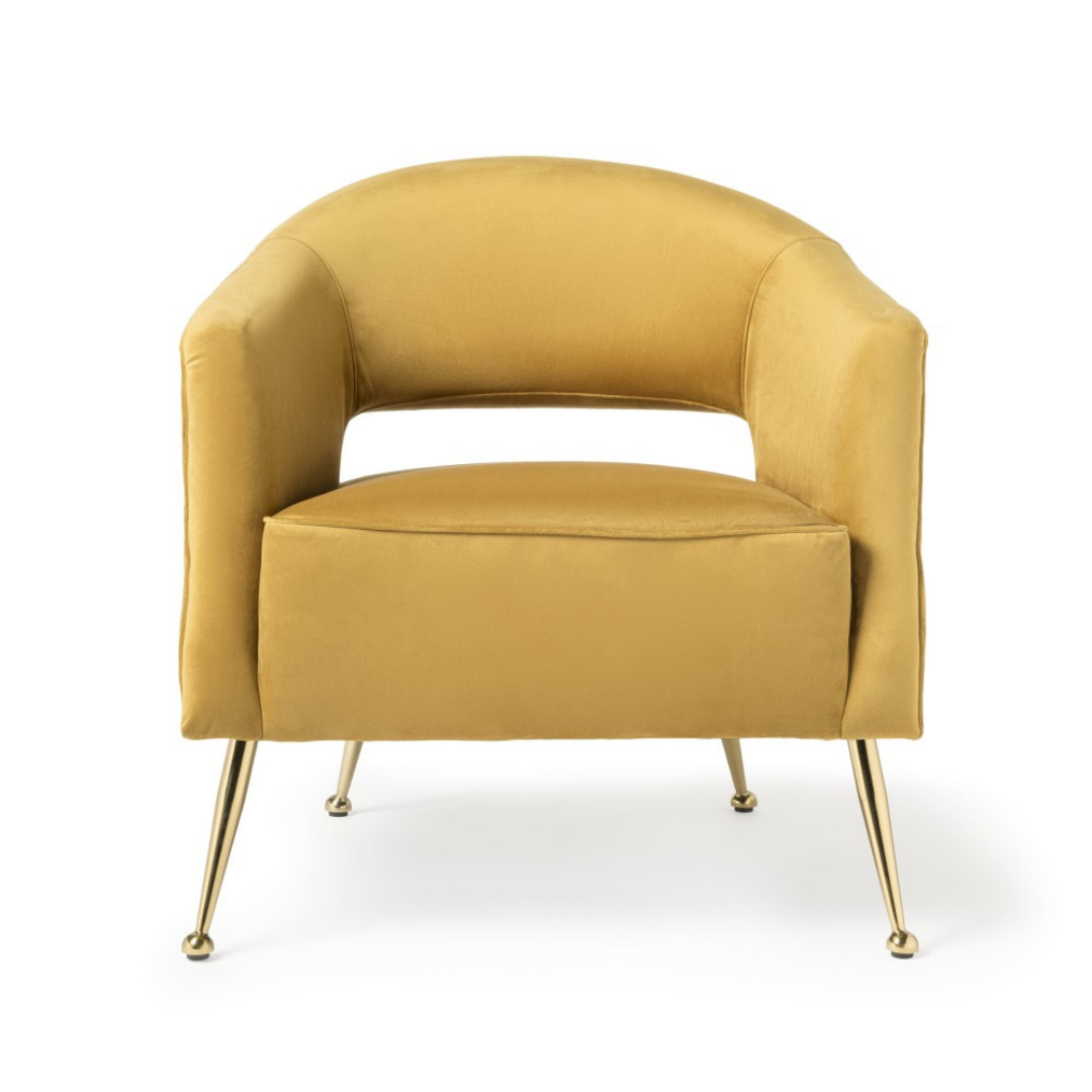 Az Essence fotel egy igazán modern bútordarab, amely kényelmével, és különleges kialakításával bármely otthon, vagy iroda központi eleme lehet. A metál fényű, kifelé álló arany színű lábak stabilitást, míg a vastag ülés, és a körülölelő háttámla maximális komfortot biztosít. Elegáns bársony kárpitozással világosszürke, és sárga színekben érhető el.