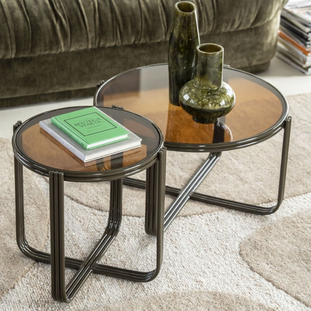 A Groovy dohányzóasztal a modern esztétikát ötvözi a bohém stílussal. Fém szerkezete minimalista vonalat követ, de mégis stabil légkört teremt. Színezett üvegből készült asztallapja igazodik a fém talapzat árnyalatihoz, így a végeredmény egy rendkívül harmonikus dizájn bútor lesz. Elérhető lerakóasztal kivitelben is.