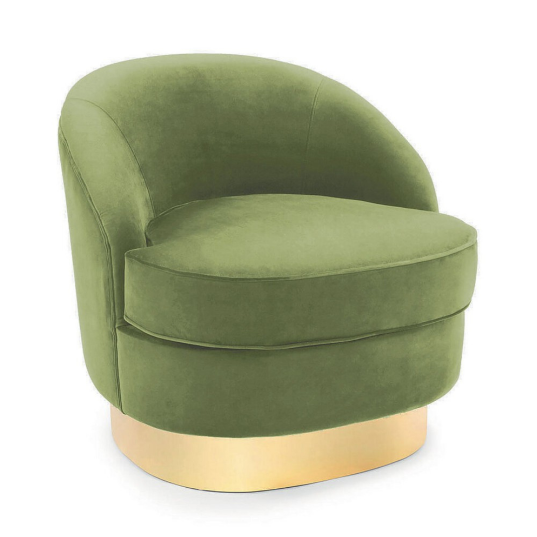 A Round fotel egy kiemelkedő bútordarab, amelynek megjelenése tiszta, és lágy formákon alapul, egyenes, és lekerekített vonalakkal kiegyensúlyozva. A kör alakú, arany színű fém alapja tartósságot és elbűvölő stílust biztosít, amely a nagyméretű kárpitozott fotelt tartja. Mély ülőfelülettel és függőleges háttámlával rendelkezik, amely tartást és kiváló kényelmet biztosít. A Round bársony fotel háromféle színben érhető el.
