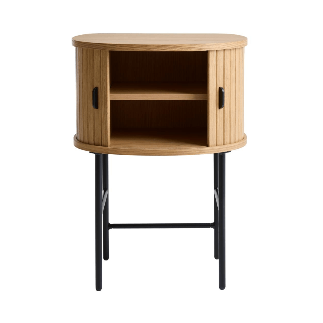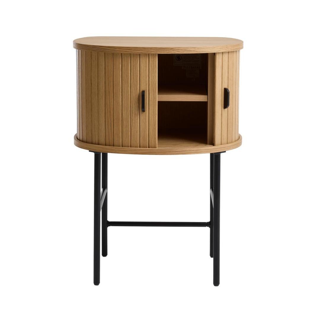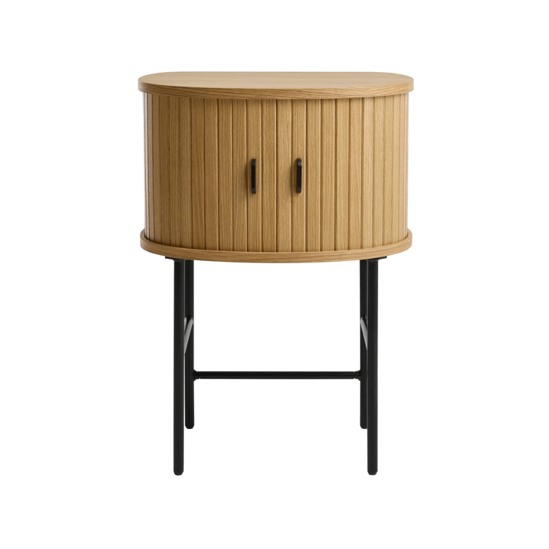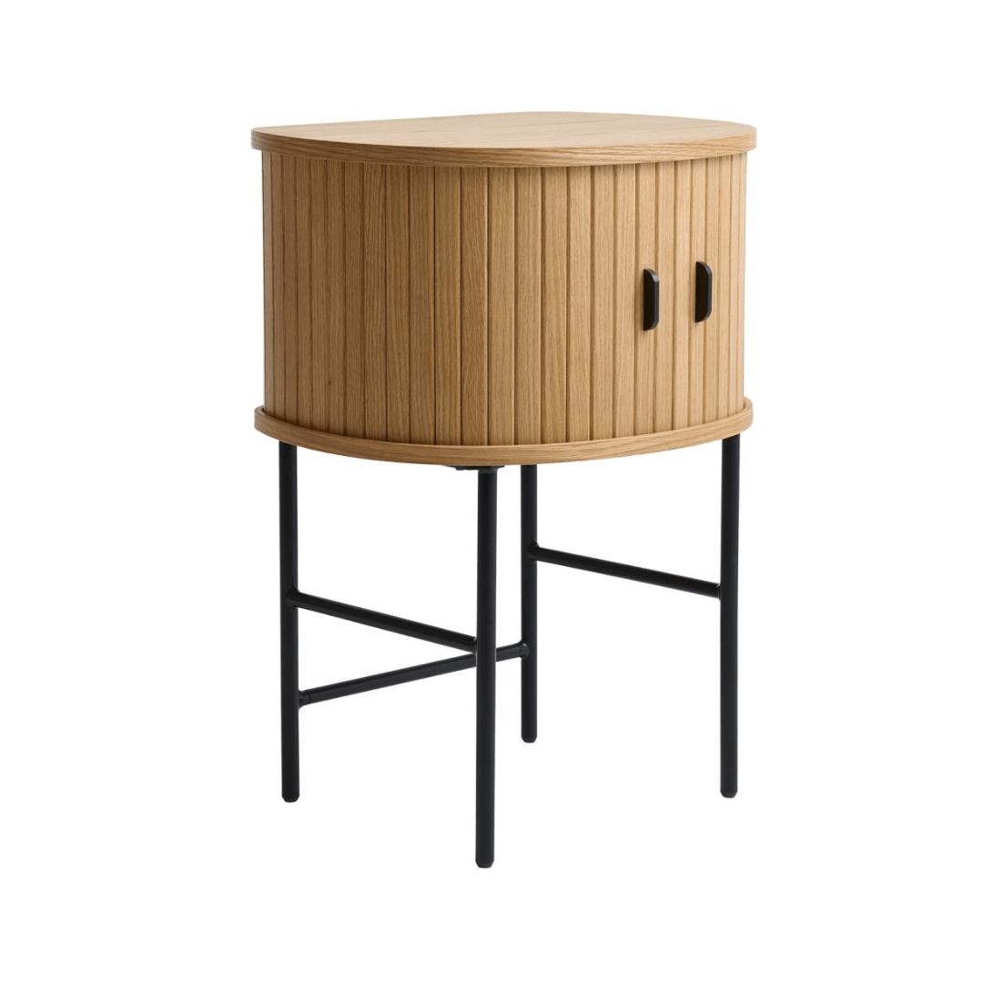 Az elegáns Nola éjjeliszekrény tökéletes választás hálószobád számára. A termék minőségi anyagokból készült, melyek garantálják a tartósságot és a stílusos megjelenést. Tölgy furnér és fekete porfestett fém kombinációja, mely modern és letisztult megjelenést kölcsönöz a kis szekrénynek.