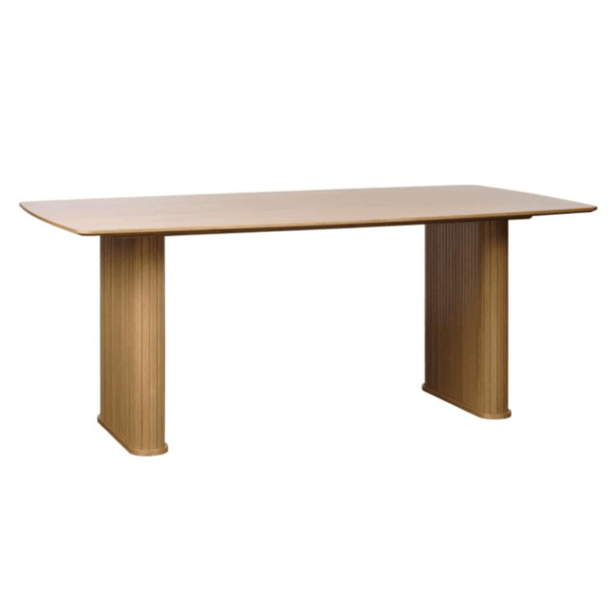Ha egy elegáns és modern étkezőasztalt keresel, akkor a Nola étkezőasztal tökéletes választás lehet számodra. Az asztallap tölgy furnérból készült. Mérete 100x190 cm, így kényelmesen elfér mellette akár hat személy is. Ha szeretnéd otthonodba varázsolni a skandináv minimalista stílust, akkor a Nola fa étkezőasztal tökéletes választás lehet számodra.