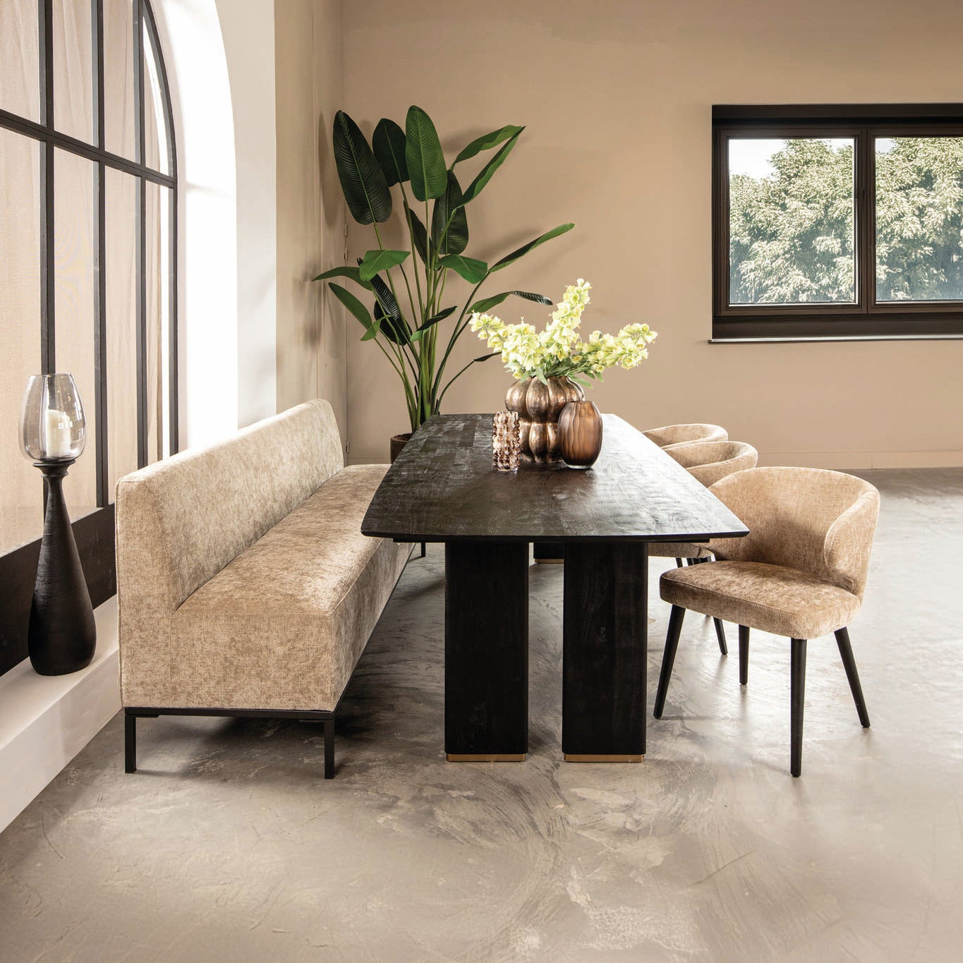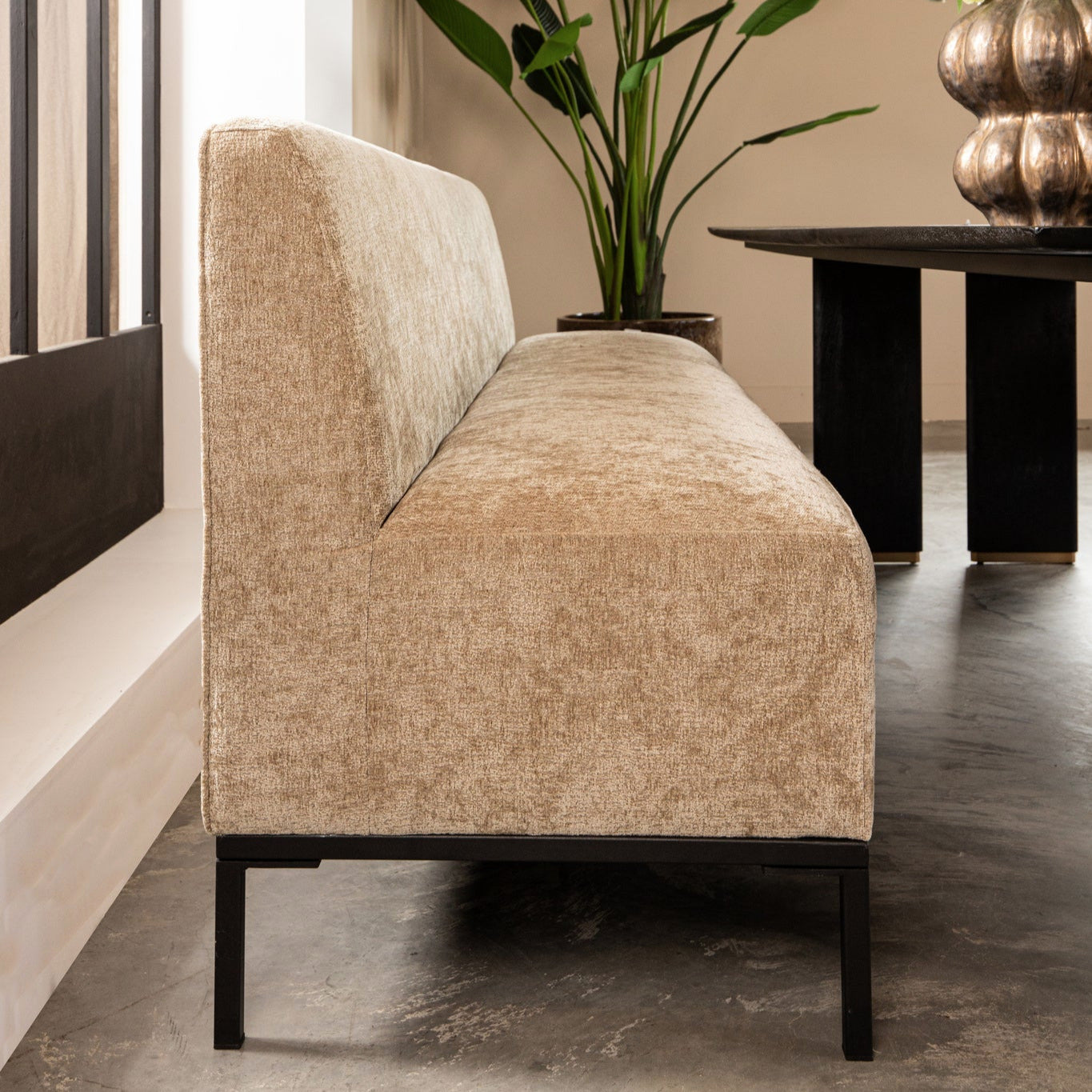 A 200, és 240 cm-es változatban is kapható Xania pad vastag háttámlájával, és ülésével kényelmes használatot biztosít. A bézs színű, velúr hatású szövettel kárpitozott bútordarabot a vékony fekete fém lábak emelik ki. Modern, és minimalista megjelenése miatt könnyedén illeszkedik minden belső térbe. Étkezőkben, és nappalikban is kiválóan mutat.