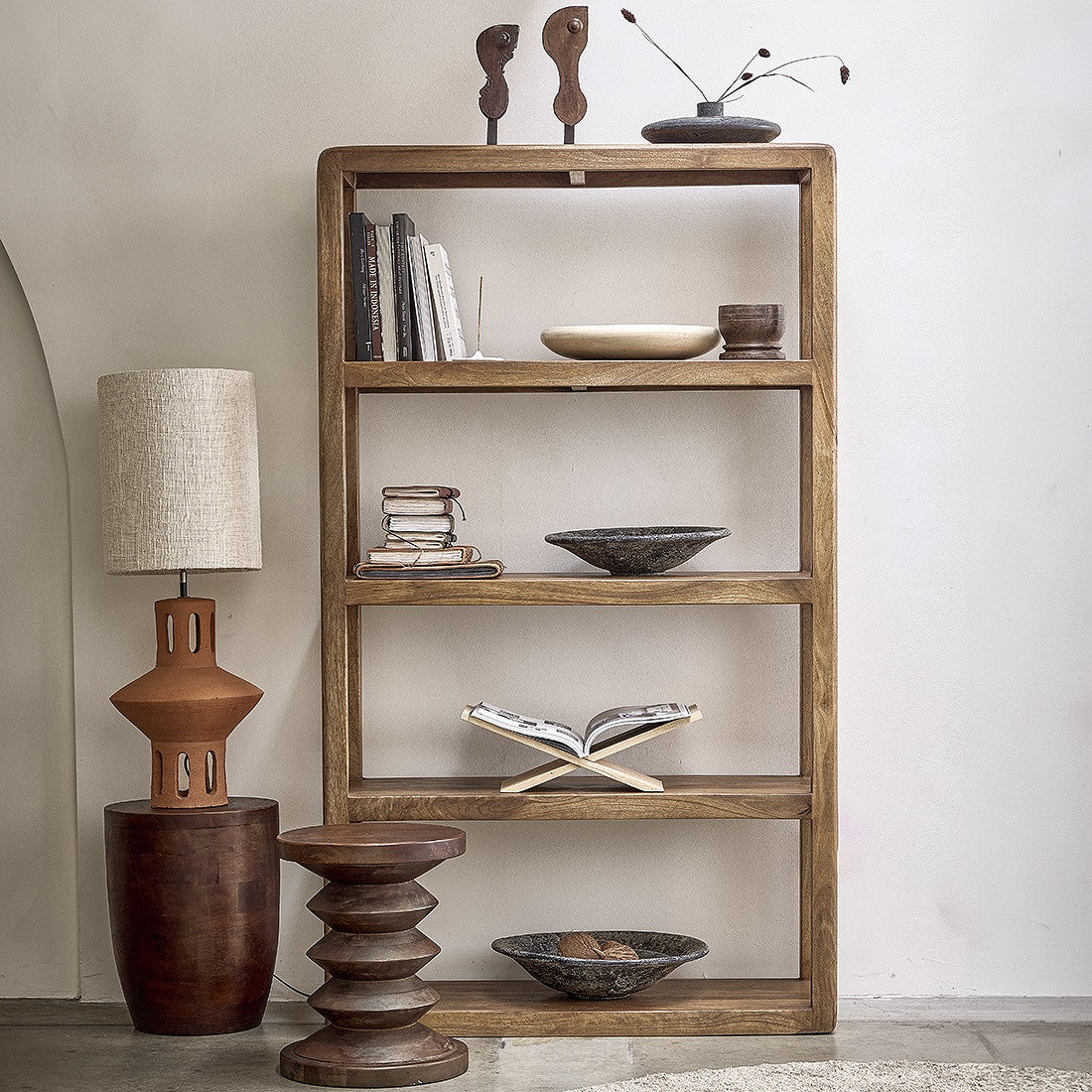 A Bullnose polc tartós mangófából készült. Az állvány organikus formája lekerekített, mind az oldalain, mind az alján. Ez a kollekció egy különleges keményfából készül: az Indiából származó mangófából. Ez a fafajta valóban fenntartható, mivel egy már virágzó iparág mellékterméke: a mangógyümölcs termelésé.