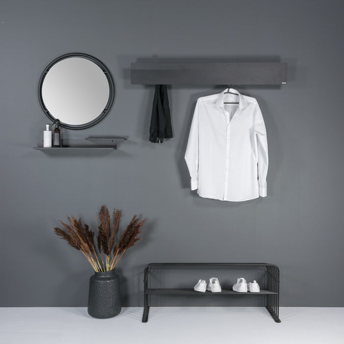 A Folio egy elegáns kialakítású, 70 cm / 120 cm széles fali polc. Válaszd a kisebb vagy a nagyobb méretet, hogy legszebb kiegészítőidet ezen a fali polcon mutathasd be. A Folio fali polcot akár a konyhában is használhatod. Elegáns fekete színe, és egyedi kialakítása minden helyiségben feltűnővé teszi.