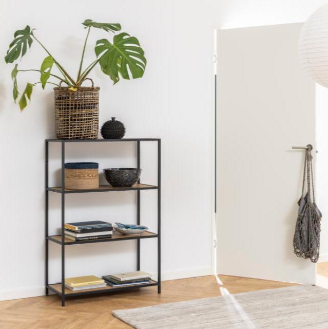 Az apró részletekkel megtervezett Seaford polc segít abban, hogy nagy változást érj el otthonodban. A bútor durva fekete porszórt fémkerettel van felszerelve, amely egységes monokromatikus megjelenést kölcsönöz. A négy darab, természetes, natúr színű polc kiemeli a ráhelyezett dekorációkat, és lágyítja az összhatást.