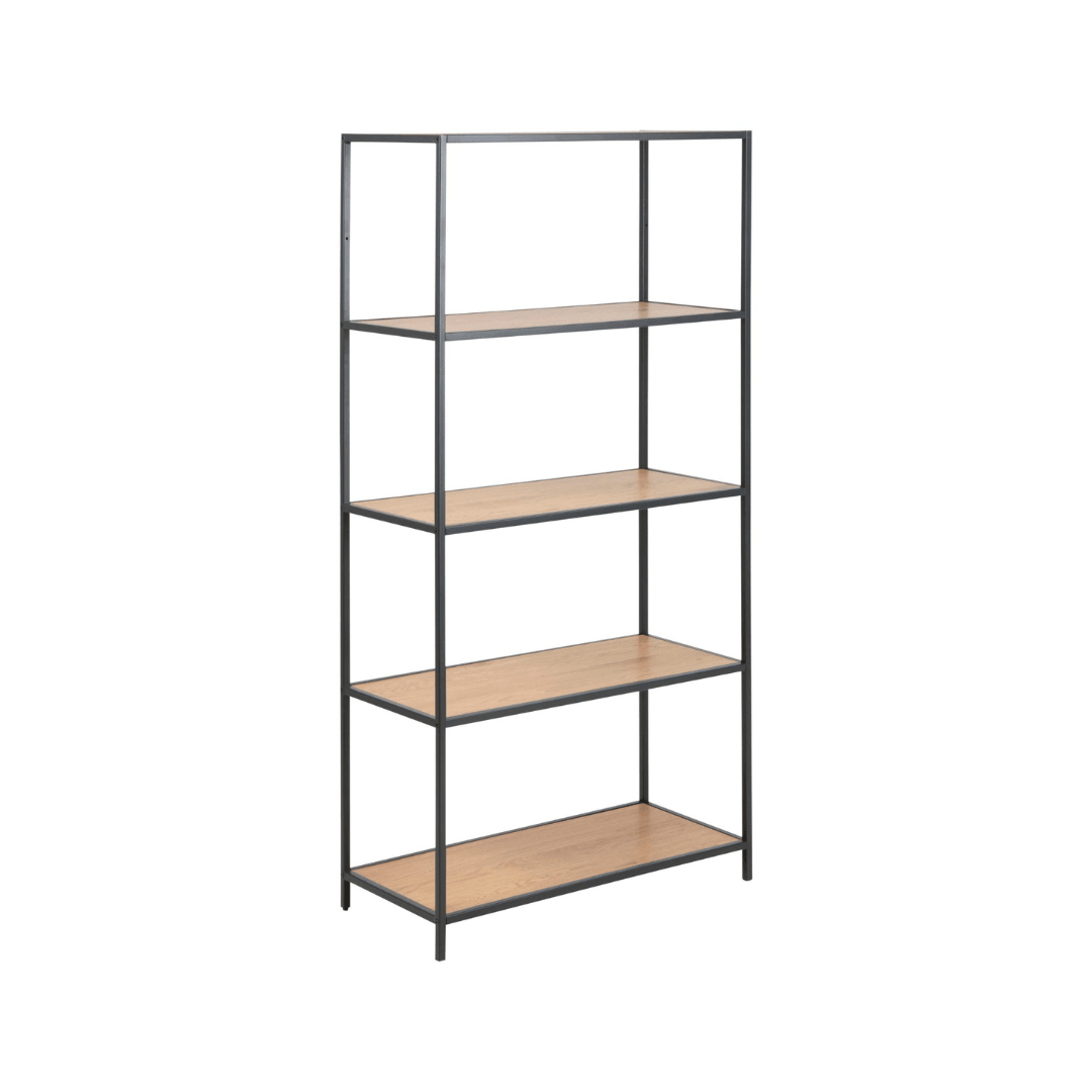 Tágas, egyszerű forma, mégis érdekes dizájn, ez az ipari megjelenésű Seaford polc. A fekete durva porszórt fém egyértelműen meghatározza a formát, míg az öt natúr színű polc rusztikus hangulatot kölcsönöz. Egyszerűen egy elegáns bútor, amely könnyedén kiemeli stílusodat.
