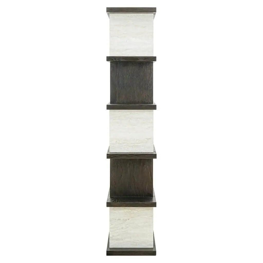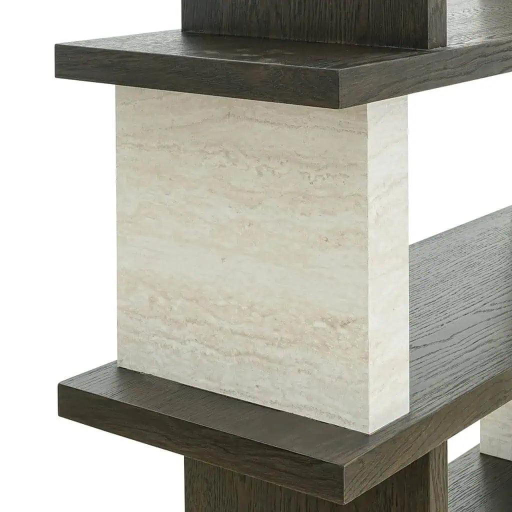 A Waldorf polc egy igazán modern, és innovatív bútor, mely a sötétbarna fa anyagot kombinálja a fehér kővel, így kontrasztos megjelenést ér el. Ez a termék a praktikus funkciója mellett, egy dizájnelem is, mely központi figyelmet kaphat a belső terekben. A hat polcos kialakítás rengeteg hellyel szolgál a könyveknek, és a dekorációknak is, így könnyedén kialakíthatod a stílusodnak megfelelő olvasósarkot.