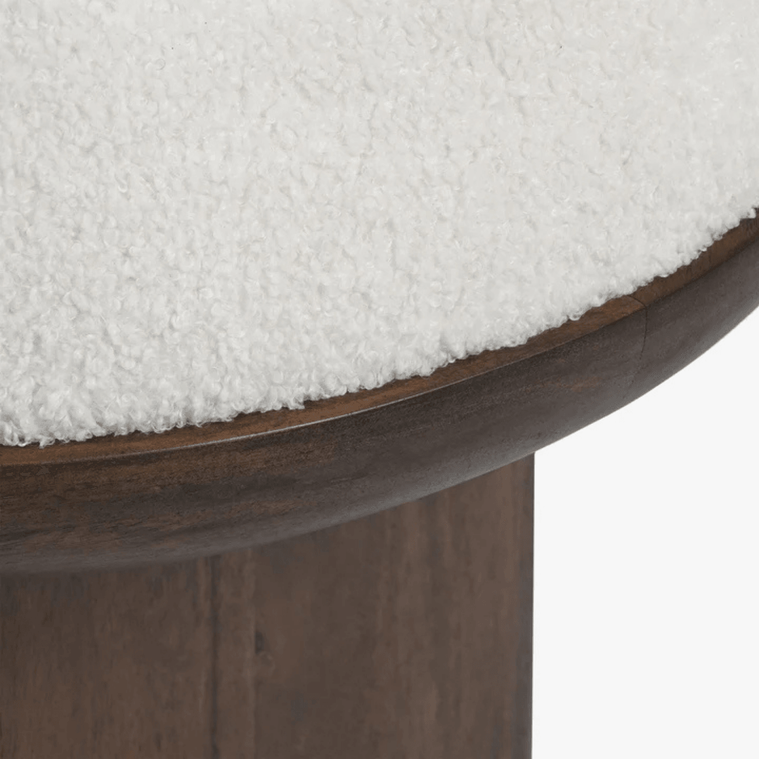 Az Agapi puff sokoldalú kiegészítője lehet bármely helyiségnek. Puha ülésként, lábtartóként vagy akár praktikus asztalként is szolgálhat. A lekerekített formájával az Agapi puff harmonikusan ötvözi a stílust és a praktikumot. A fehér buklé kárpitozást tökéletesen kiegészítik a masszív, sötétbarna akácfa lábak. Az Agapi puff 34x34 cm-es változatban is kapható.