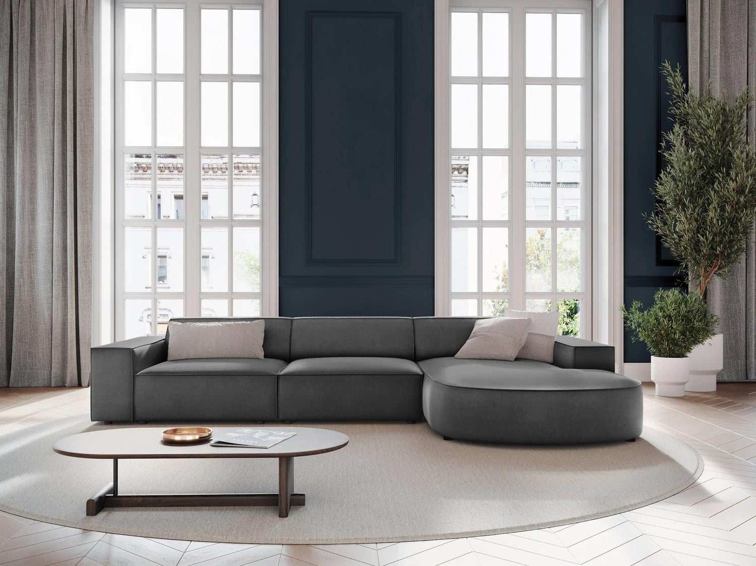 Jodie1 jobbos bársony sarokkanapé 284x166