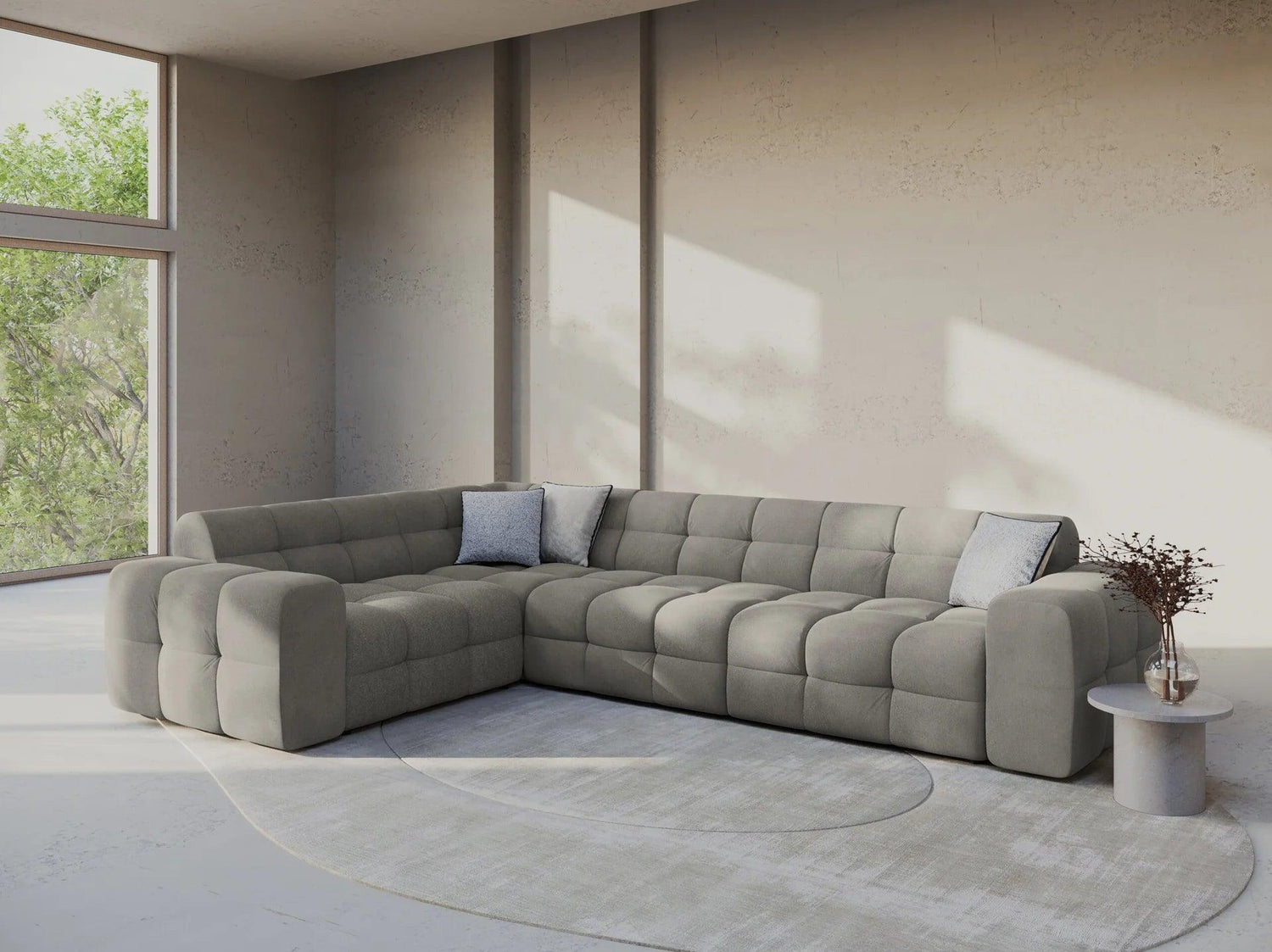 Kendal balos bársony sarokkanapé 332x231 - Sötétszürke utólagos megrendelésre kerül, és azonnal kiszállítjuk, amint újra raktáron van.