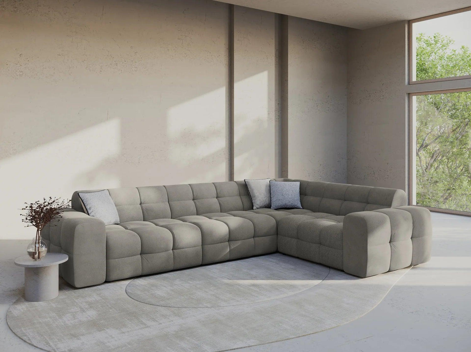 Kendal jobbos bársony sarokkanapé 332x231 - Sötétszürke utólagos megrendelésre kerül, és azonnal kiszállítjuk, amint újra raktáron van.