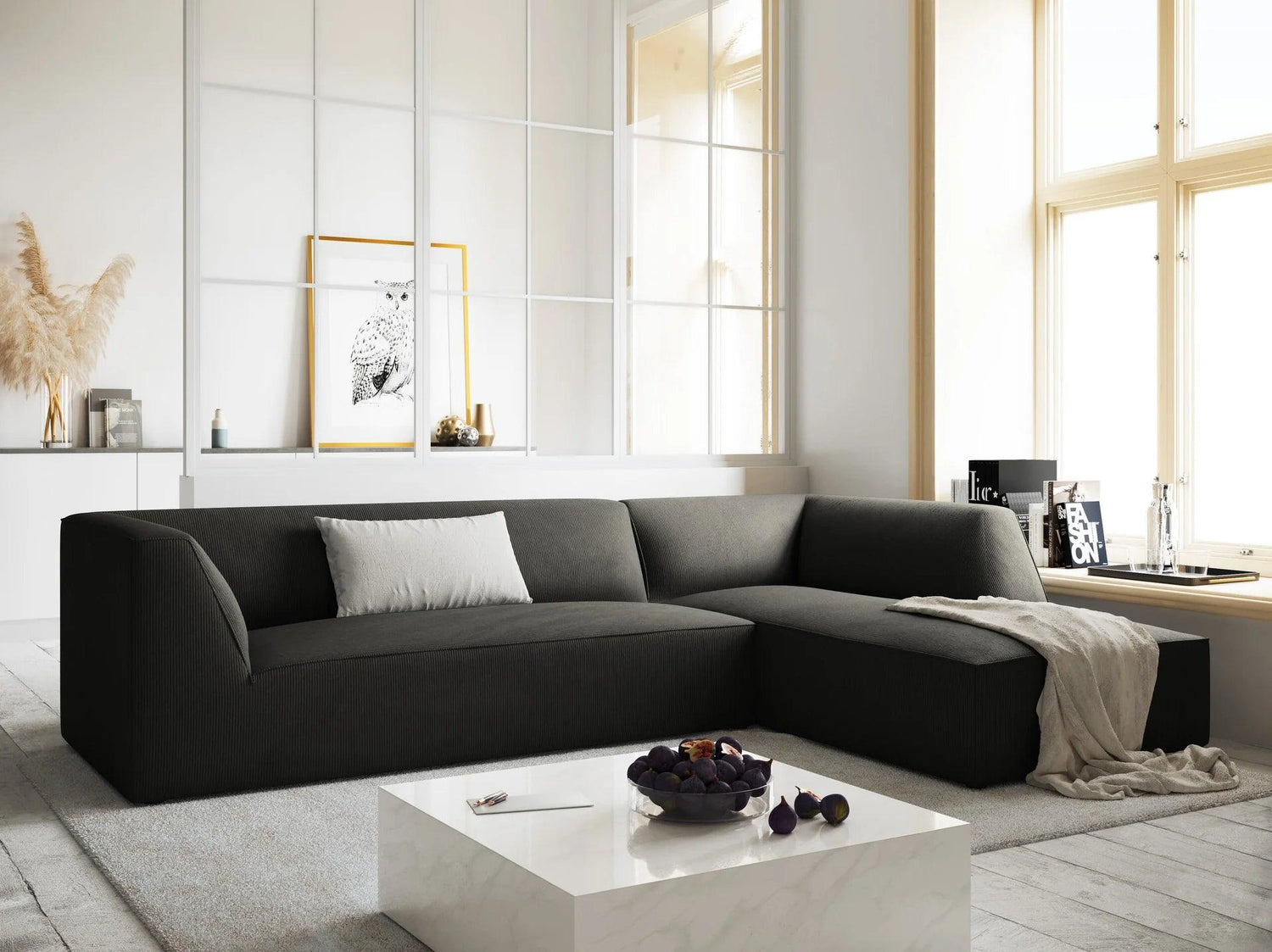 Ruby jobbos kordbársony sarokkanapé 273x180 - Sötétszürke utólagos megrendelésre kerül, és azonnal kiszállítjuk, amint újra raktáron van.