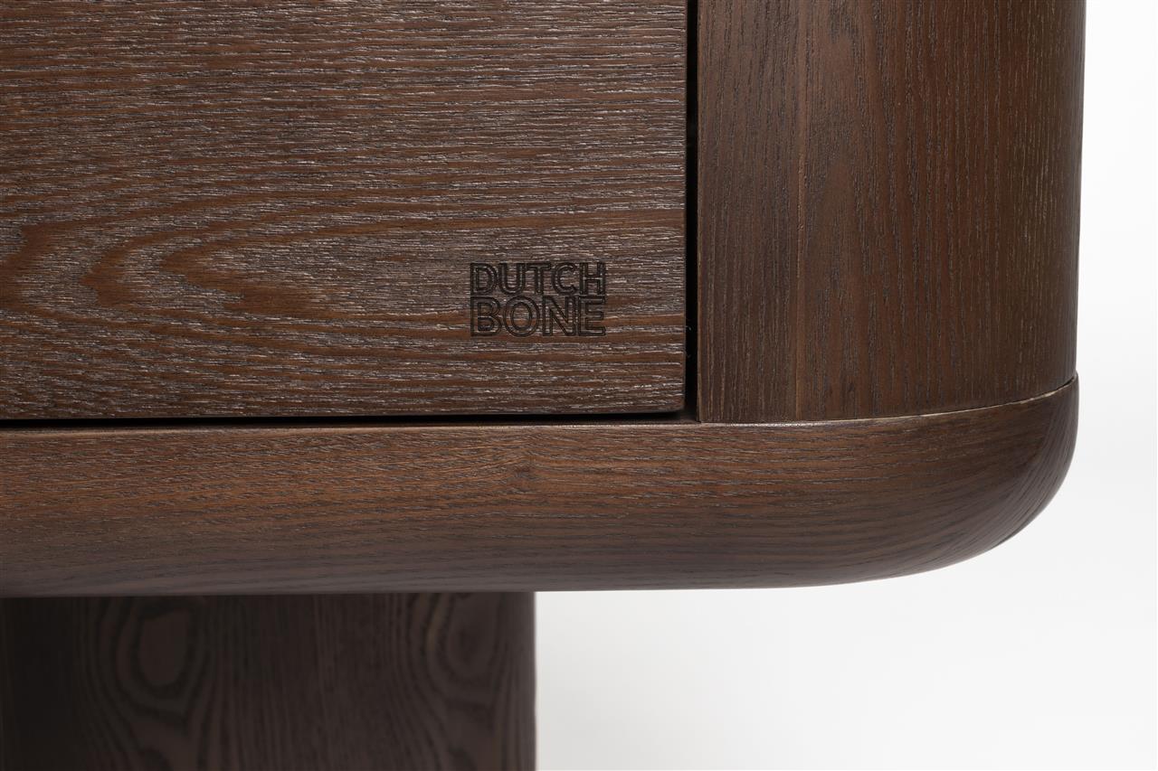 A Dutchbone Herman tökéletes egyensúlyt teremt a lágyság és a karakter között. Ezen darabok mély dió színe visszarepíti Önt az 50-es vagy 60-as évek enteriőrjeinek hangulatába. A látható erezet robusztus megjelenést és kellemes, meleg környezetet kölcsönöz. Ami igazán megkülönbözteti ezeket a szekrényeket, az a lábak hullámos vonalvezetése és a szekrény lekerekített élei, amelyek együtt szinte tapintható, hívogató megjelenést hoznak létre.