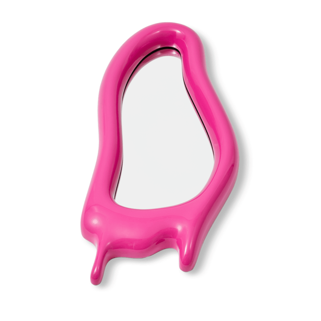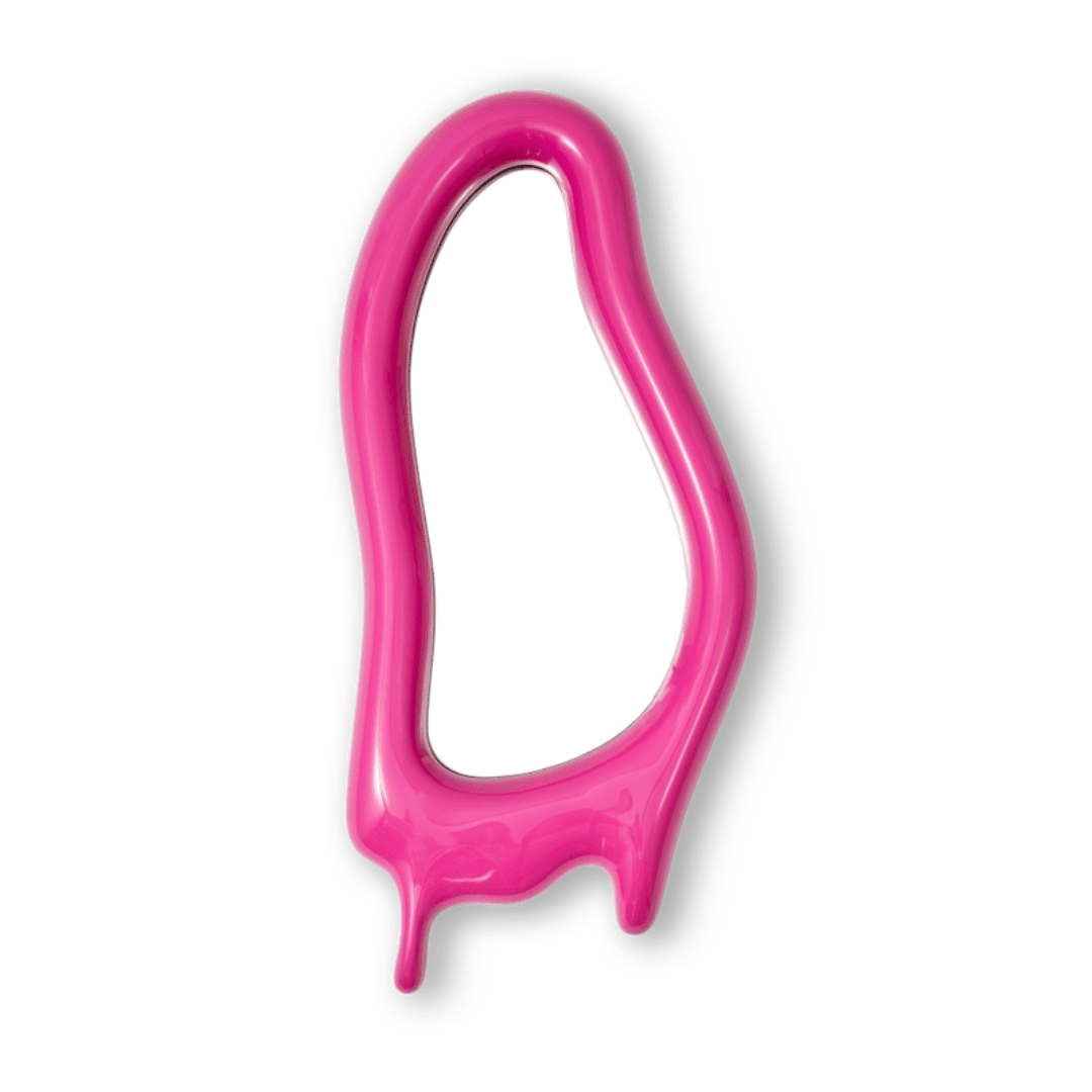 A Melting tükör egy különleges kialakítású darab, amely bekeretezi a folyékonyságot. Az olvadó forma élénk rózsaszín színben kapható. Kritikusan megkérdőjelezi a korrekció és tökéletesség mai kulturális rögeszméjét. Kérlek maradj szürreális, egyedi, és mindig add önmagad. Mérete 103x50 cm.