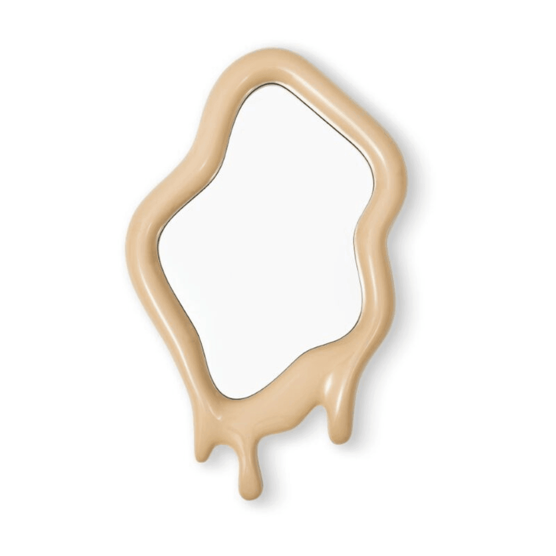 A Melting tükör egy különleges kialakítású darab, amely bekeretezi a folyékonyságot. Az olvadó forma gyönyörű bézs színben kapható. Kritikusan megkérdőjelezi a korrekció és tökéletesség mai kulturális rögeszméjét. Kérlek maradj szürreális, egyedi, és mindig add önmagad. Mérete 140x90 cm.