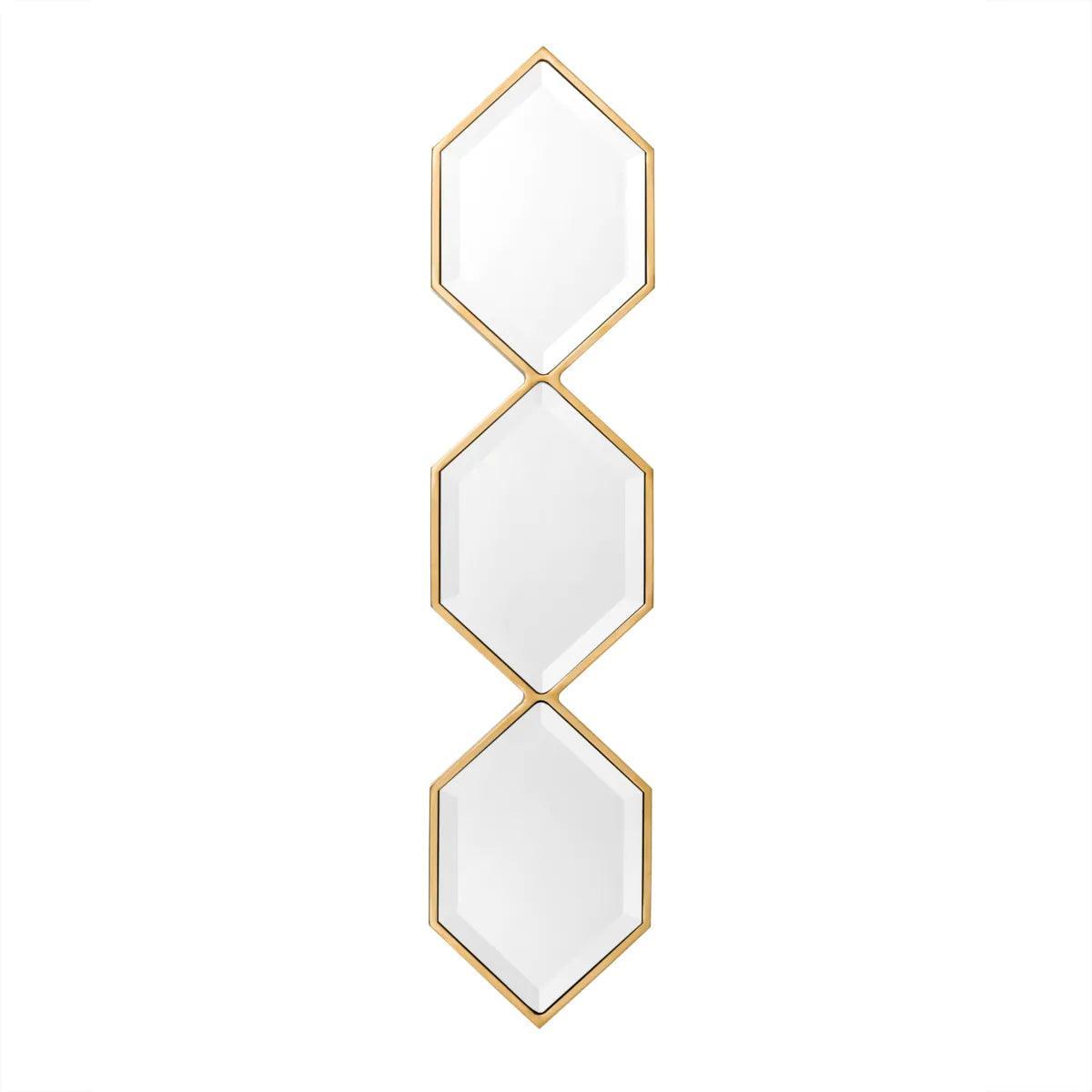 A szemet gyönyörködtető Saronno fém tükör kiválóan illik art deco, loft, vintage, klasszikus és modern stílusú enteriőrökbe is. A három hatszögletű, ferde tükör elegáns, aranyozott kerettel van ellátva, így még látványosabbá varázsolják otthonod belső tereit. Fali dekorációként is remek választás. French cleat módszerrel rögzíthető függőlegesen, mely kívülről egyáltalán nem látszik.
