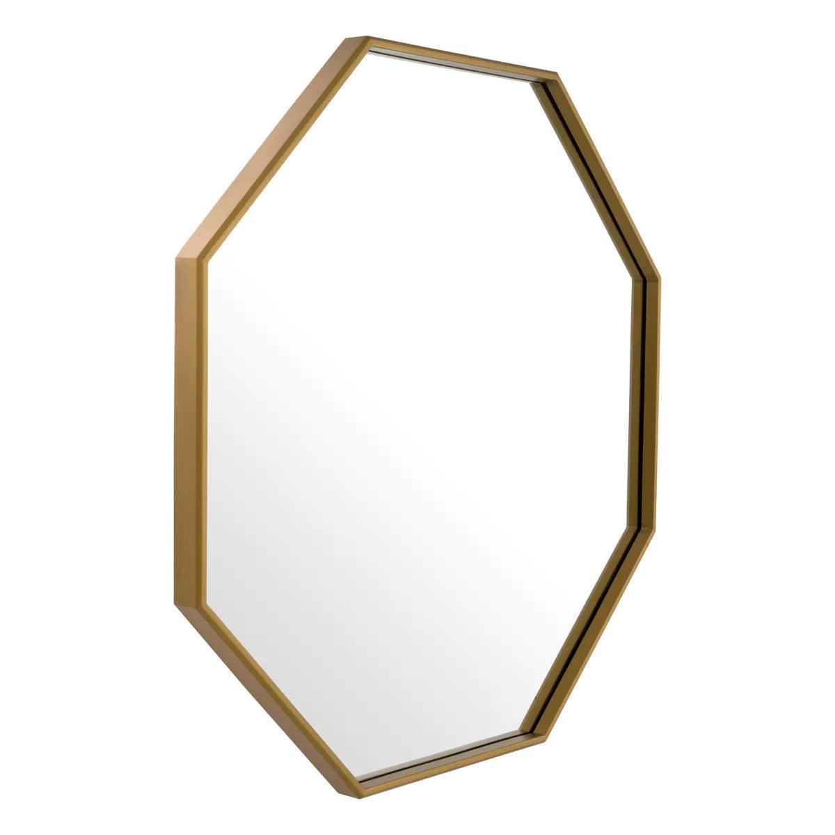 A trendi Tavolino fém tükör minden kortárs dekorációt nagyszerűen egészít ki. Frissítsd fel szobád megjelenését ezzel a nyolcszögletű tükörrel, amelyet szálcsiszolt sárgaréz kerettel láttak el. Ideális választás lehet bármelyik otthoni vagy irodai tér díszítésére, emellett funkcionális elemként is szolgál, optikailag tágítva és feldobva a helyiséget. French cleat módszerrel rögzíthető.