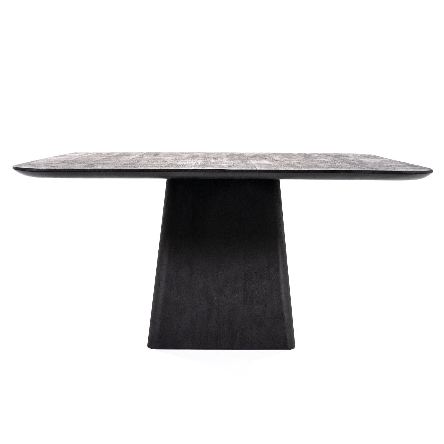 Az Aron étkezőasztal a skandináv minimalizmus és az indusztriális stílus jegyeit ötvözi. A 150 cm átmérőjű, kerek asztallap ideális választás a közös étkezésekhez, hiszen a forma adottságaiból adódóan mindenki kényelmesen látja egymást, segítve a közvetlen beszélgetéseket. Az asztal teljes egészében tartós és fenntartható forrásból származó mangófából készült, amelynek felületét fekete festéssel tették még karakteresebbé. A robusztus váz és a tágas felület stabilitást és prémium érzetet biztosít a mindennapok során.