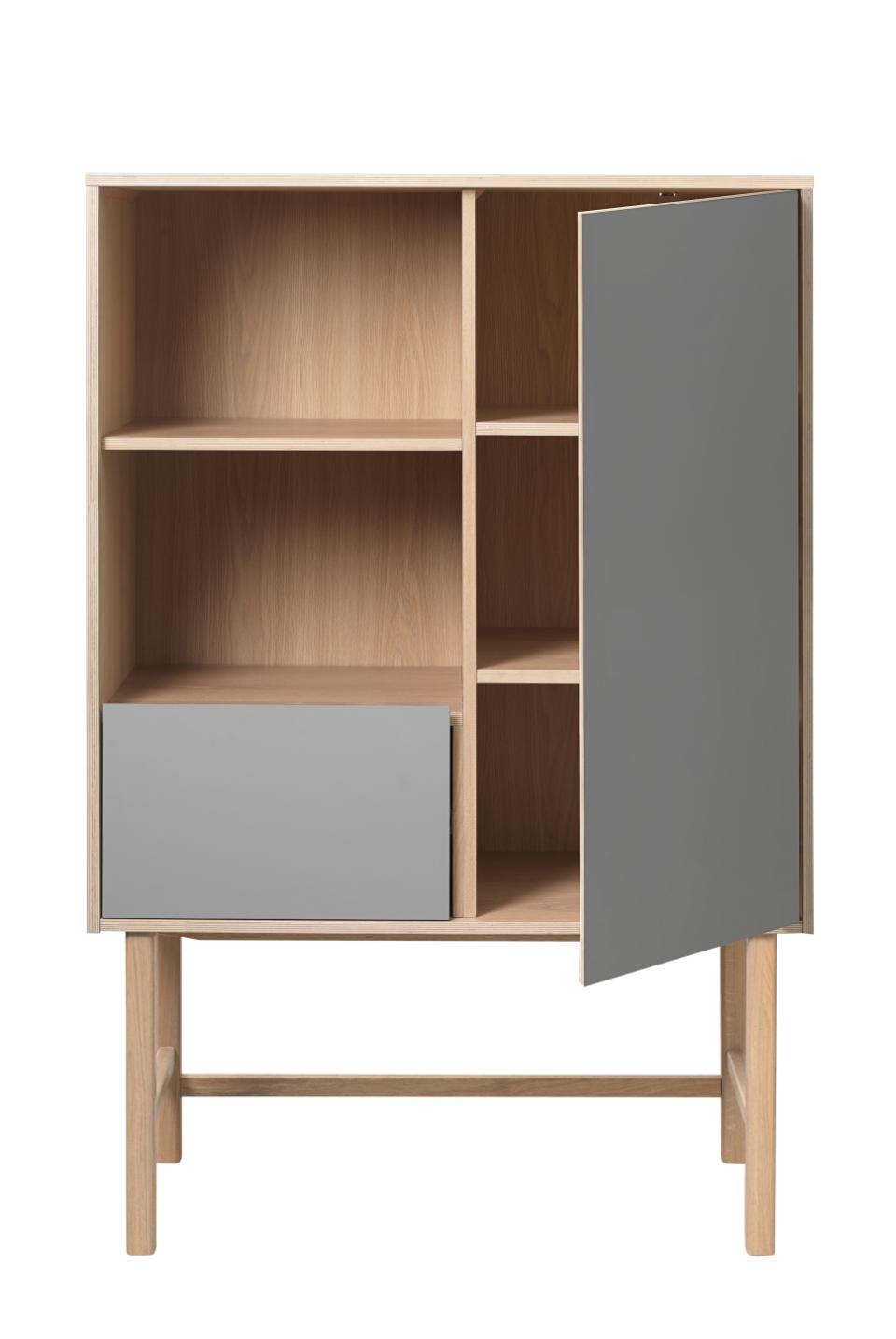 Bilbao magasszekrény – Tölgy és HPL kombinációval - Szürke utólagos megrendelésre kerül, és azonnal kiszállítjuk, amint újra raktáron van.