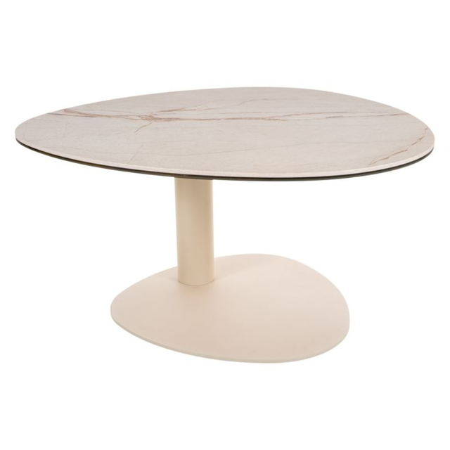 Ciao dohányzóasztal – Spanyol kerámia tetővel és fém vázzal, 74x74 cm - Bézs utólagos megrendelésre kerül, és azonnal kiszállítjuk, amint újra raktáron van.