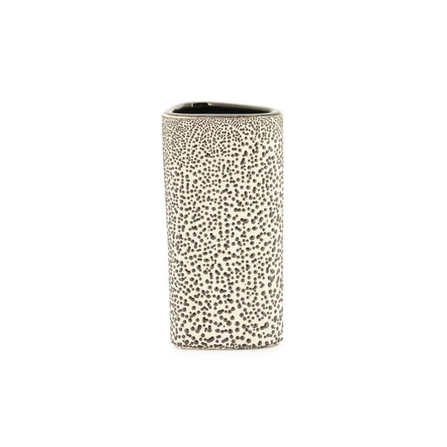A Dotangle vázák egyedi megjelenését a kerámiából gondosan elkészített sziluett garantálja. Pöttyözött festéssel készített mintázata modern érzetet kelt, miközben időtálló minőséget képvisel. Funkciója mellett kiválóan feldobja a beltereket és kiemeli a benne elhelyezett virágok és növények szépségét.