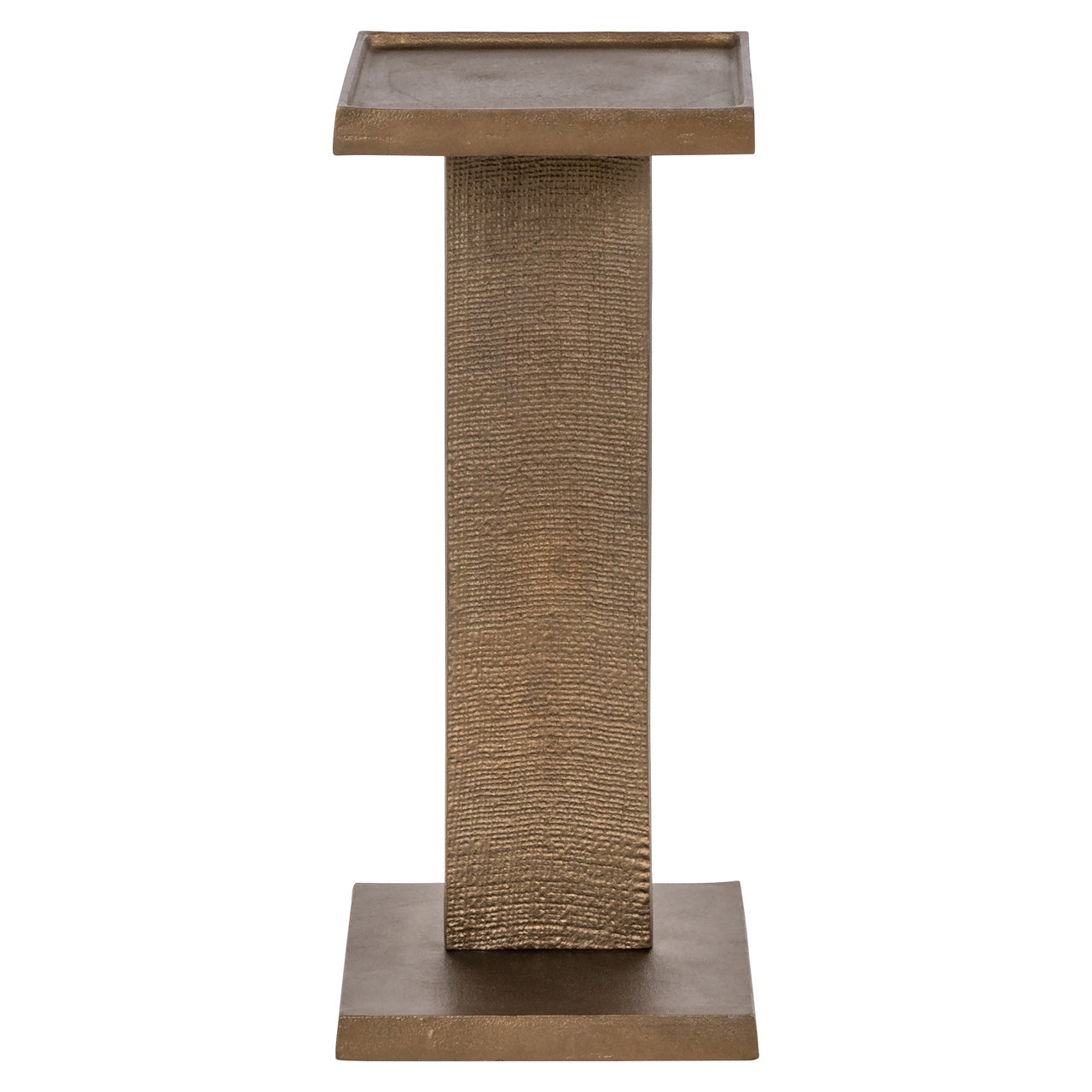 A Foley asztalka tökéletes választás, ha egy stílusos, mégis kis helyigényű kiegészítőt keres. Az asztal teljes egészében alumíniumból készült, amelynek az antik sárgaréz bevonat kölcsönöz időtálló, patinás megjelenést. Karcsú, 25x25 cm-es alapjának köszönhetően a legkisebb helyeken is elfér, legyen szó egy fotel melletti lerakóhelyről vagy az ágy melletti stílusos éjjeliszekrény-helyettesítőről. 5 kg-os súlya és robusztus anyaga stabilitást biztosít, miközben akár 20 kg-os terhelést is biztonsággal elbír.