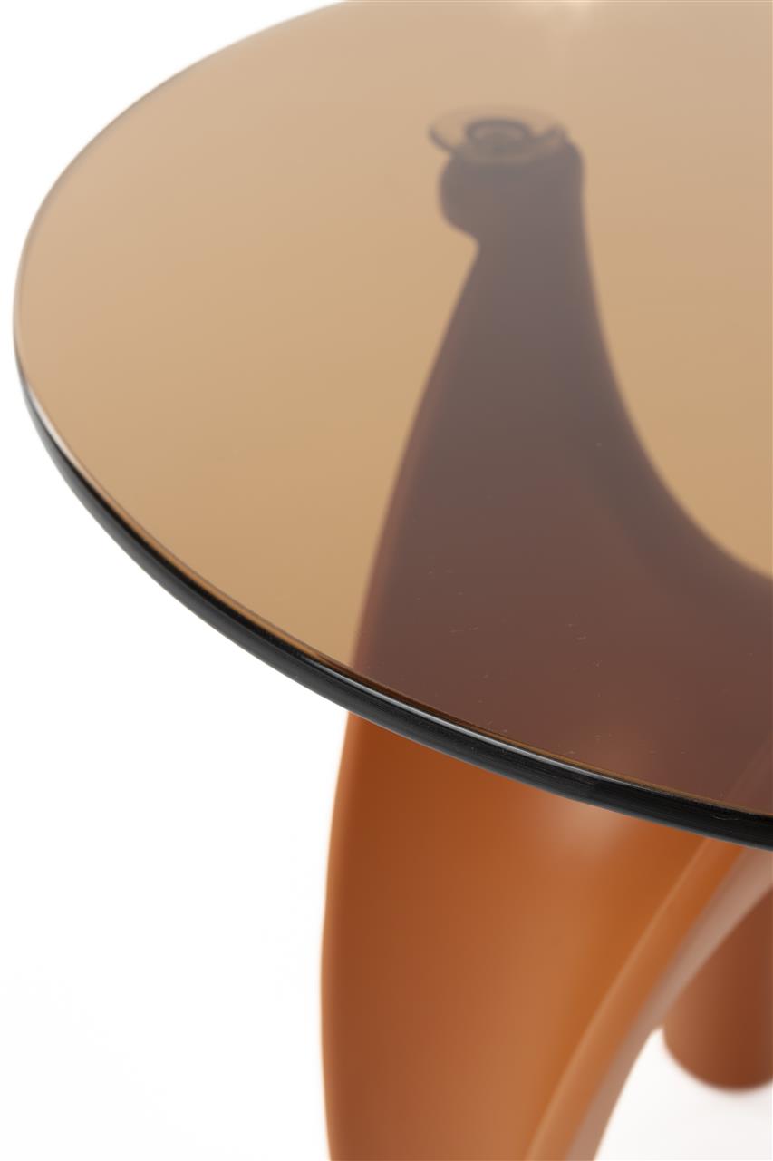 Tegye merészebbé otthonát a Bold Monkey Hactua lerakóasztallal, amely bár kis méretű, vizuális hatása annál nagyobb. Az asztal alapja egy szoborszerű, vörös tónusú műgyanta váz, amely stabilan tartja a stílusosan színezett narancssárga edzett üveglapot. Formatervezése az organikus vonalak és a futurisztikus esztétika határán mozog, így tökéletes kiegészítője lehet egy modern nappalinak vagy egy kreatív stúdiónak.