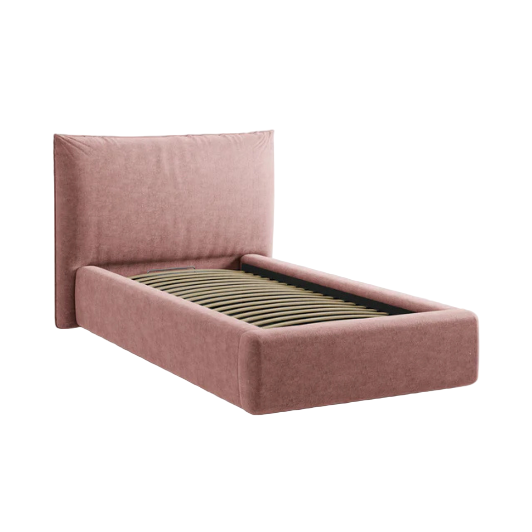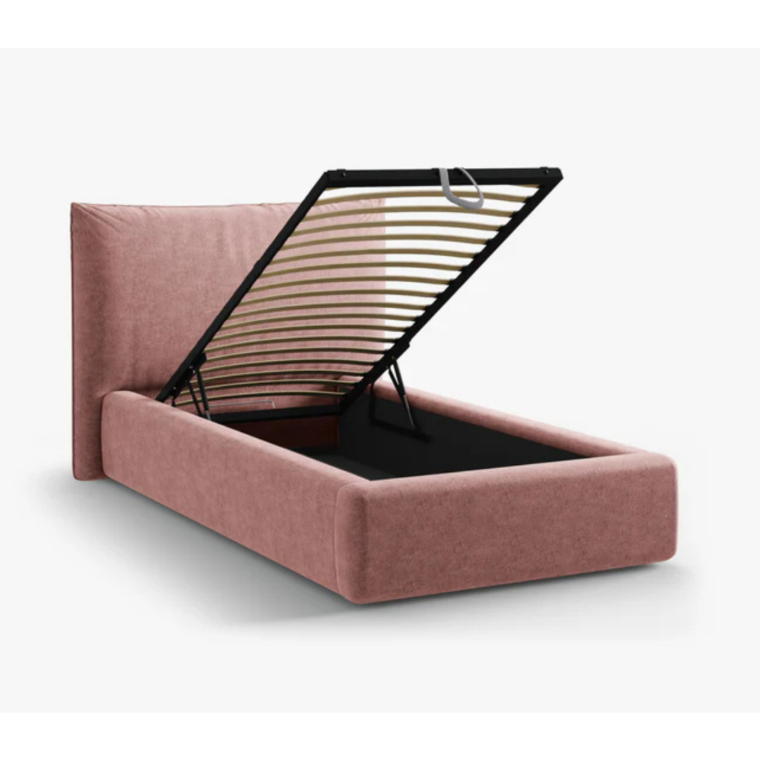 A Kaelle egy kárpitozott ágy, amely gyönyörűen ötvözi a modern esztétikát a funkcionalitással. Puha fejtámlájának, egyszerű kialakításának és praktikus tárolóhelyiségeinek köszönhetően ideális választás hálószobába, gyerekszobába vagy vendégszobába. A Kaelle zsenília huzatú ágy nyolcféle színben, és ötféle (90x200cm, 140x200 cm, 160x200 cm, 180x200 cm, 200x200 cm) méretben kapható.
