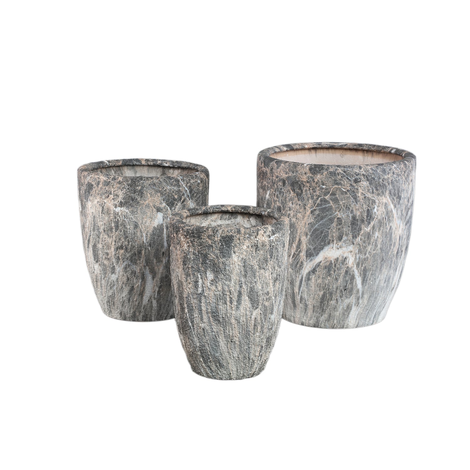 A kül-, és beltéren is használható Miah kerámia virágtartó szett három különböző méretű kaspót tartalmaz. Különleges bevonata, természetes mintázata, és hosszúkás formája miatt könnyedén illeszkedik bármilyen környezetbe. A készlet bézs, világosbarna, és világosszürke színekben kapható.