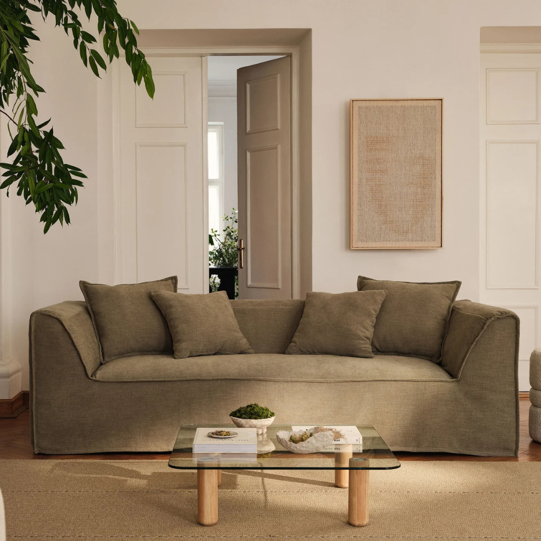 A Milton 4 személyes kanapé a laza stílust ötvözi a praktikus funkciókkal. Levehető huzata megkönnyíti a tisztítást, így tökéletes választás a dinamikus életterekbe. A kárpitanyag fokozza a puha, bohém ihletésű megjelenést, míg a mély ülőfelület és a puha párnák kivételes kényelmet biztosítanak. A Milton kanapé ötféle színben kapható.