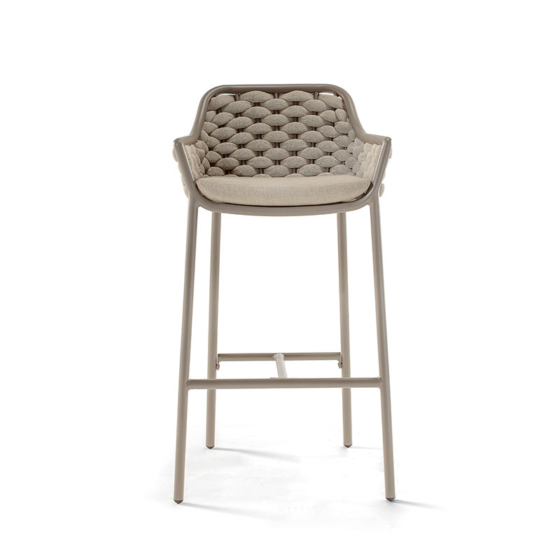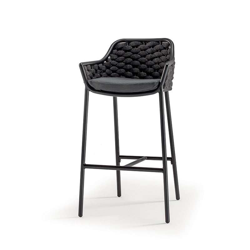 A Panama bárpult szék a kortárs kültéri design és a funkcionális kényelem tökéletes példája. A könnyű, de robusztus alumínium vázat speciális textilene és gumi kötél fonat borítja, amely nemcsak esztétikus, hanem az időjárási viszontagságoknak is kiválóan ellenáll. A 77,0 cm-es ülésmagasság ideális a standard magasságú bárasztalokhoz és konyhai pultokhoz. A szék puha ülőpárnával rendelkezik, amelynek huzata levehető, így tisztítása és karbantartása rendkívül egyszerű. Rakásolható kialakításának köszönhetően használaton kívül helytakarékosan tárolható, akár 12 darabot is egymásba rakva.