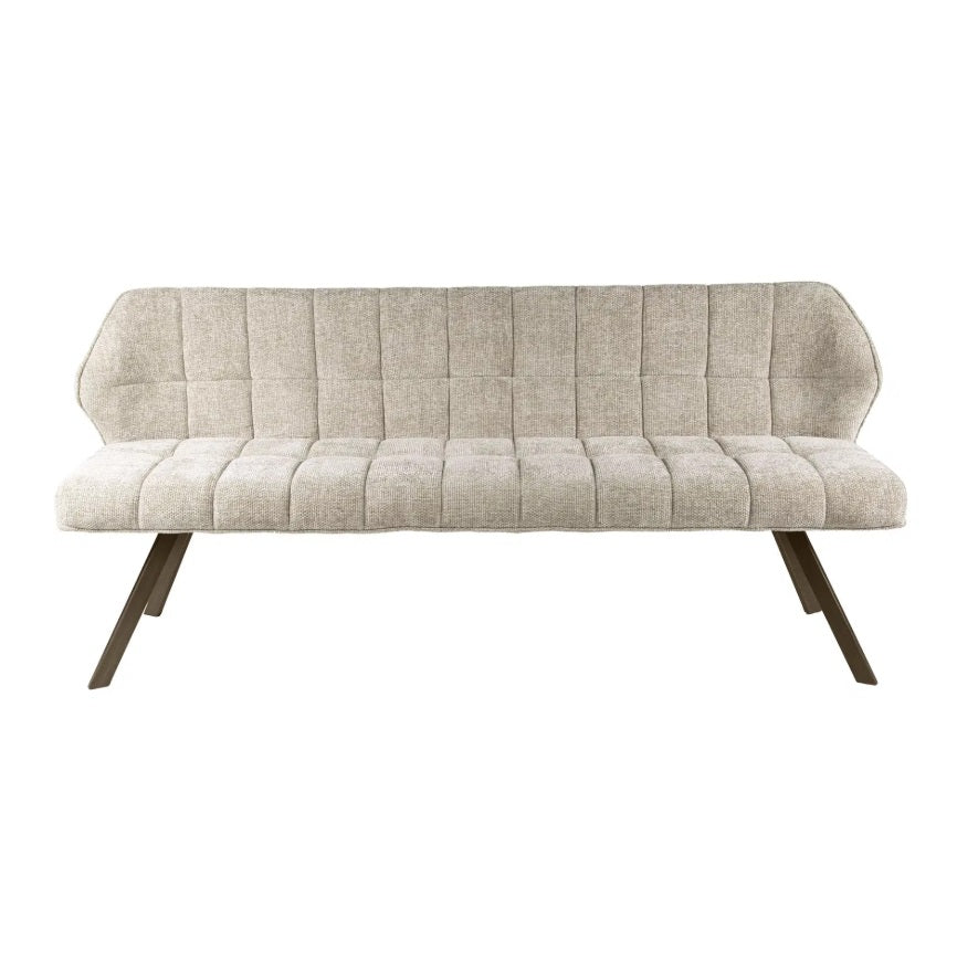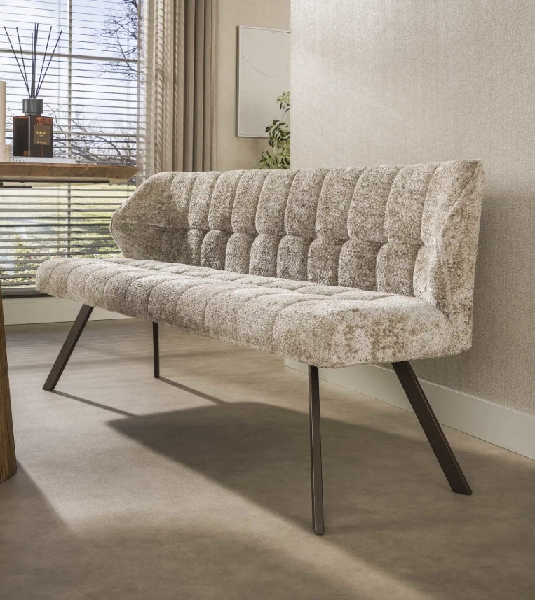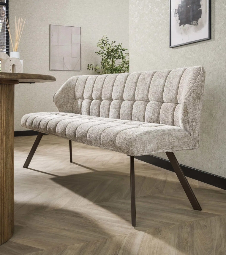 A Raster étkezőpad kárpitozott ülő- és háttámlával készül, amelyen dekoratív rácsmintás varrás fut végig, a széria jellegzetes dizájnelemként. A letisztult, kortárs forma étkezőasztalok mellé különösen jól illik, és könnyen illeszkedik modern enteriőrökhöz. A Hoven homok-barna szövet meleg, semleges tónusa természetes hangulatot teremt, miközben a strukturált felület vizuális mélységet ad az összképnek. A pad bronz vagy antracit színű, porszórt acél lábszerkezeten áll, és több szövet- és színvariációban is elérhető. A Raster széria részeként illő fotelben is elérhető.