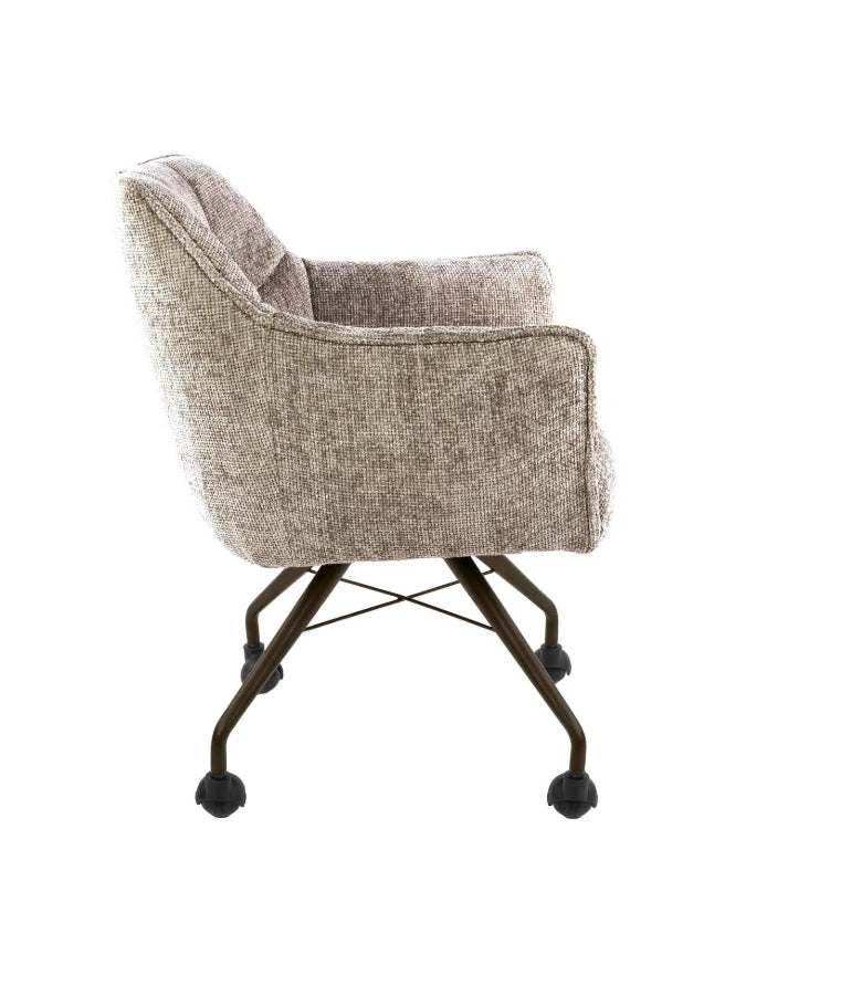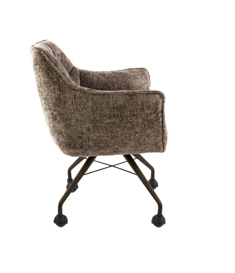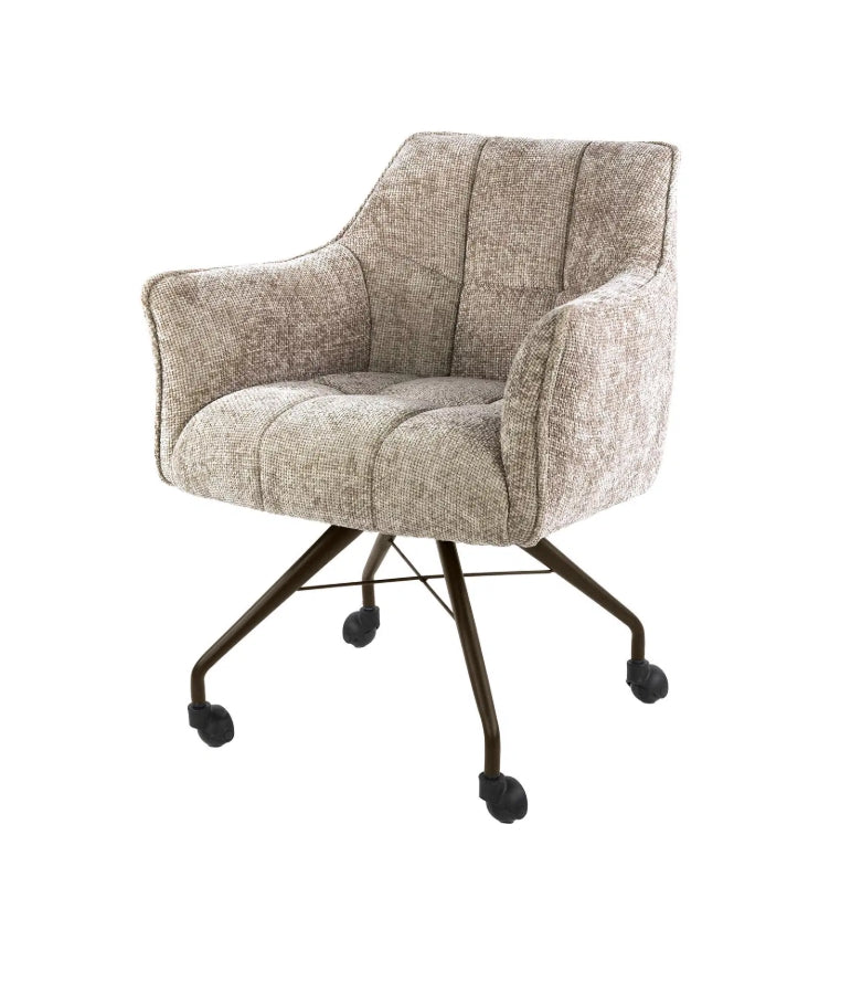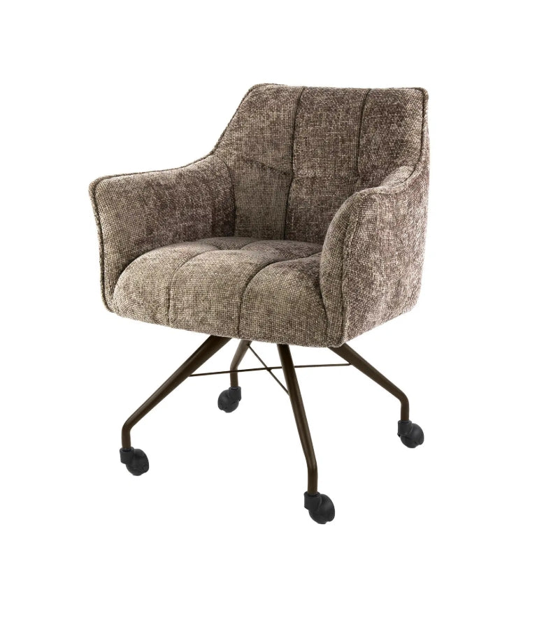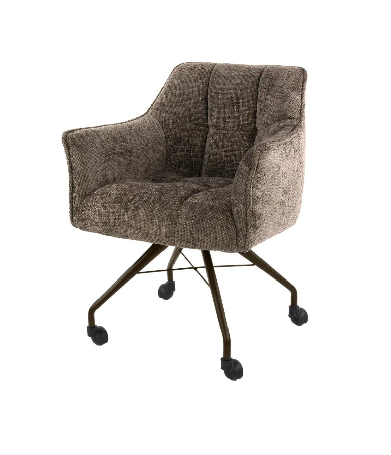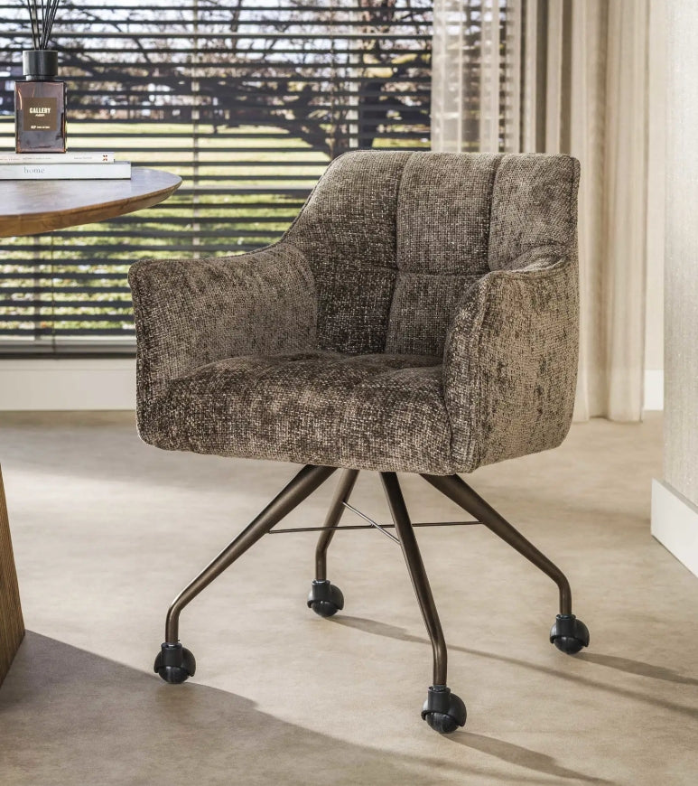 A Raster fotel kényelmes, hosszú élettartamú ülőélményt nyújt a nosag rugózású ülőfelületnek köszönhetően, amely egyenletesen osztja el a terhelést és megőrzi formáját. A dizájn jellegzetes eleme a kárpitozott ülő- és háttámlán megjelenő rácsmintás varrás, amely strukturált, modern karaktert kölcsönöz a búторnak. A fotel görgőkön áll, porszórt acél lábszerkezettel, amely bronz vagy antracit színben elérhető. A Hoven taupe-barna szövet meleg, semleges tónusával könnyen illeszkedik különböző nappalii vagy irodai enteriőrökhöz. A termék páronként kerül csomagolásra, az ár darabonként értendő.