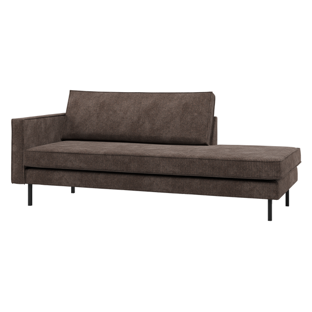 A holland WOOOD belsőépítészeti márka ikonikus Rodeo sorozata a modern nappalik karakteres és megbízható alapköve. Ez a balos elrendezésű daybed a letisztult vonalvezetést ötvözi a kényelmes, nyitott formával, amely ideális pihenéshez vagy stílusos térelválasztó elemként a térben. A magas lábak légies megjelenést kölcsönöznek a bútornak, miközben a gazdagon párnázott ülőfelület határozott és tartós kényelmet biztosít. A luxus Remy Rib szövet jacquard szövési technikával készült, ami bársonyos tapintást és gazdag textúrát ad a felületnek. A széles csíkozású, megerősített háttérrel rendelkező kárpit nemcsak látványos, hanem a 80.000 Martindale kopásállóságnak köszönhetően rendkívül ellenálló is.