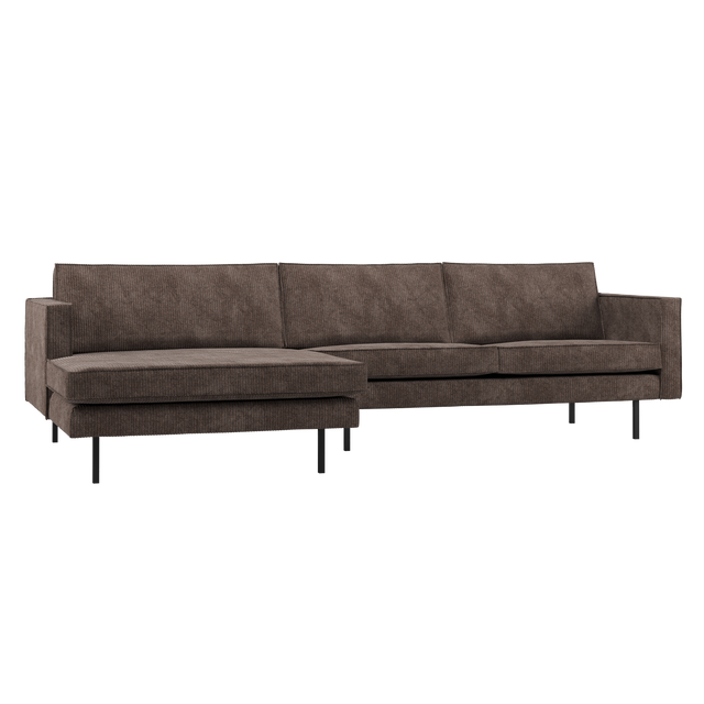 A holland WOOOD márka ikonikus Rodeo sorozata a modern, robusztus és kortárs design egyik legismertebb képviselője. Ez a nagyvonalú, 300 cm széles balos chaise longue kanapé a stílus és a funkcionalitás tökéletes egyensúlyát kínálja. A magas fém lábak légies megjelenést kölcsönöznek a bútornak, miközben a gazdagon párnázott ülőfelület határozott és tartós kényelmet biztosít. A különleges Ruby Rib kordbársony szövet jacquard szövési technikával készült, ami bársonyos tapintást és luxus megjelenést kölcsönöz a kanapénak. A széles csíkozású, megerősített háttérrel rendelkező kárpit nemcsak látványos, hanem a 80.000 Martindale kopásállóságnak köszönhetően rendkívül ellenálló is.