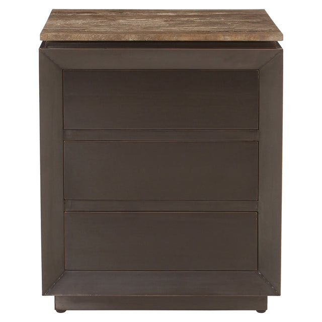 Russo éjjeliszekrény – Travertin mészkő fedlappal és sárgaréz bevonattal