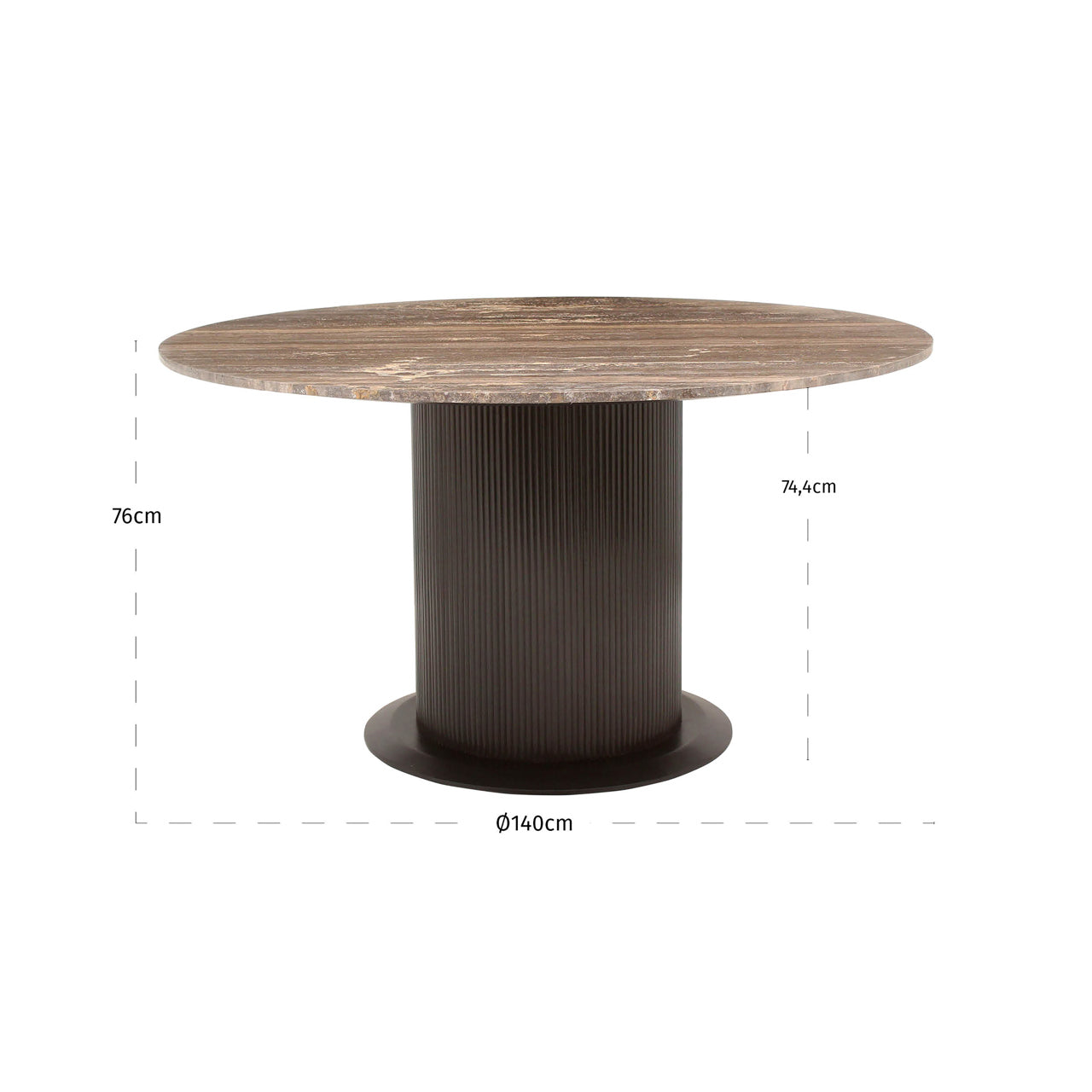 Russo kerek étkezőasztal – Travertin mészkő fedlappal és mangófa alappal - Barna utólagos megrendelésre kerül, és azonnal kiszállítjuk, amint újra raktáron van.