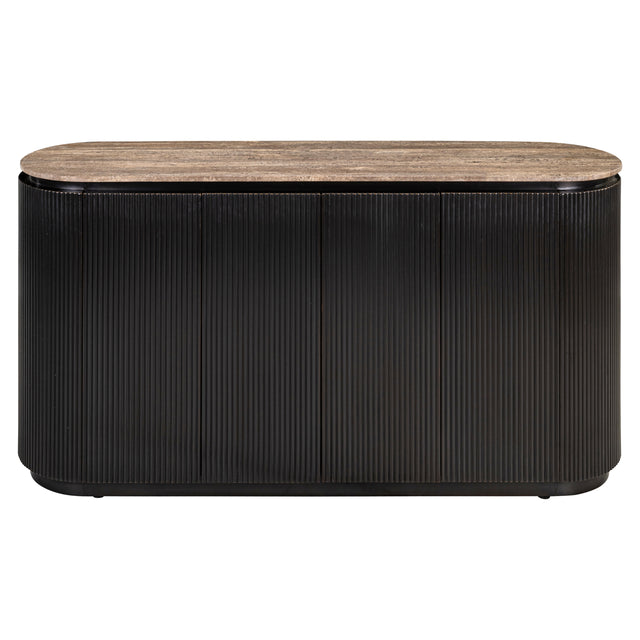 Russo komód – Travertin mészkő fedlappal és sárgaréz részletekkel - Fekete utólagos megrendelésre kerül, és azonnal kiszállítjuk, amint újra raktáron van.