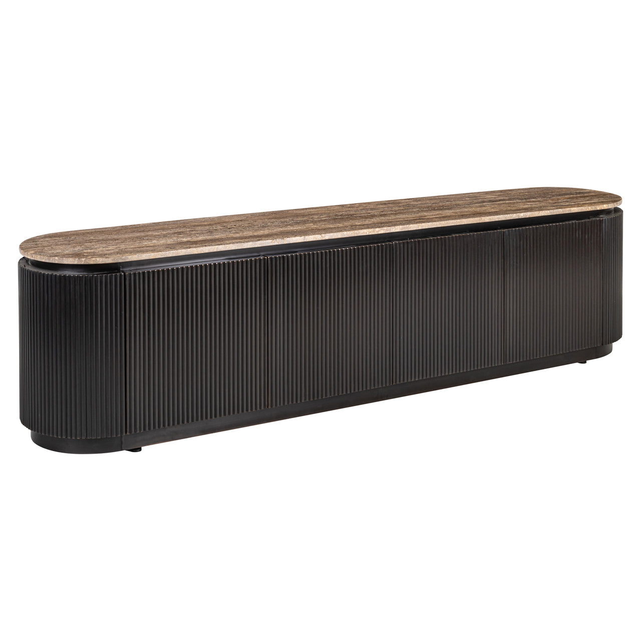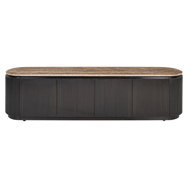 Russo TV szekrény – Travertin mészkő fedlappal és sárgaréz részletekkel - Fekete utólagos megrendelésre kerül, és azonnal kiszállítjuk, amint újra raktáron van.