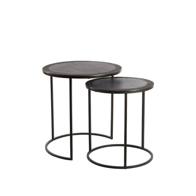 A Talca lerakóasztal szett két különböző méretű kerek asztalból áll, nyers ólom antik felületkezeléssel, amely egyedi, ipari karaktert kölcsönöz a daraboknak. A fém anyag tartósságot és időtálló megjelenést biztosít. A két különböző méret önállóan és egymás mellé csoportosítva egyaránt látványos kompozíciót alkot bármely enteriőrben.