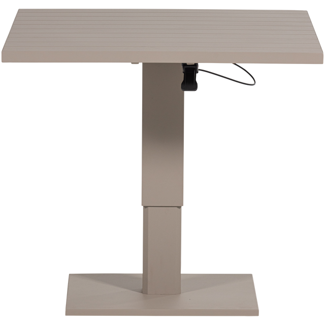 A Tesso asztal tervezésekor a legfőbb szempont a rugalmasság volt. Az egyedi mechanizmus segítségével az asztallap két különböző magassági szinten (52 cm és 77 cm) rögzíthető, így egyetlen mozdulattal alakíthatja át lounge asztalból étkezőasztallá. A teljes egészében alumíniumból készült szerkezetet kiváló minőségű porszórt festéssel látták el, amely nemcsak luxus megjelenést kölcsönöz a bútornak, hanem élethosszig tartó védelmet is biztosít a korrózió ellen. A matt felület és a robusztus felépítés garantálja, hogy az asztal hosszú évekig a terasz vagy az erkély központi, funkcionális darabja maradjon.
