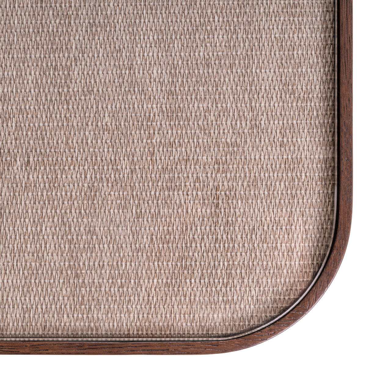 Természetes textúrák: A tölgyfa és a vászon párosítása lágy, organikus hatást kelt, amely barátságossá és hívogatóvá teszi a teret.