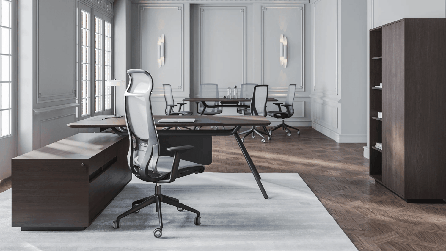 Az ARQUS executive bútorok kollekciója modern luxus hangulattal. Ennek a bútornak minden alkatrésze kiemeli a hibátlan képet és a jellegzetes karaktert. Ez a kollekció íróasztalokból, tárgyalóasztalokból és szekrényekből áll. Különböző dizájnelemekkel egyesített bútorok felhasználásával stílusosan egységes és harmonikus vezetői munkakörnyezetet alakíthat ki.