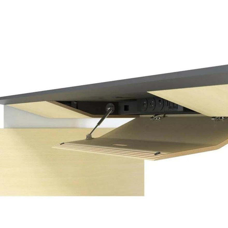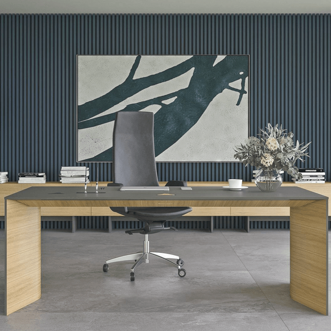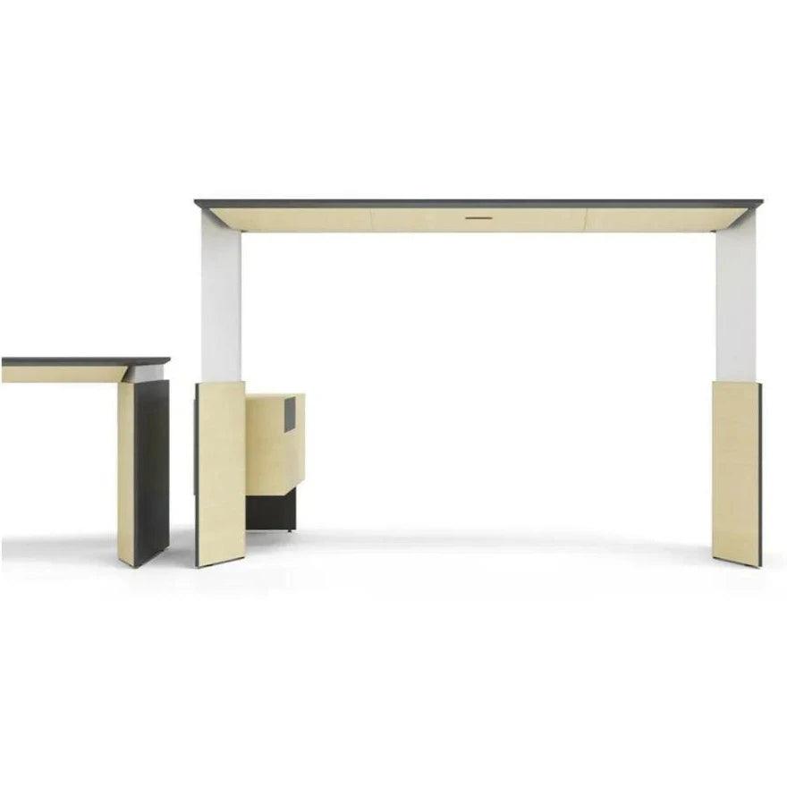 A MOVE irodabútor-rendszer egy modern, funkcionalitásra összpontosító megoldás a vezetők számára. Segít mozgásban maradni még a munkaasztalnál is. Az állítható magasságú asztallap furnér anyaga (tölgy, kőris vagy dió furnér) Bluetooth vezérléssel párosul, melynek minimalista kialakítása és polírozott rozsdamentes acél felületei harmonikus egységet alkotnak, és luxus érzetet keltenek.