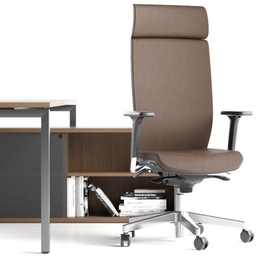 Az AURA-t úgy tervezték, hogy kényelmes pozíciót találjon a munkához és a pihenéshez. Az vezetői szék harmonikusan ötvözi az időtlen, univerzális dizájnt és a kényelmet, amit a háttámla és a tágas ülőrész ergonomikus funkciói biztosítanak.