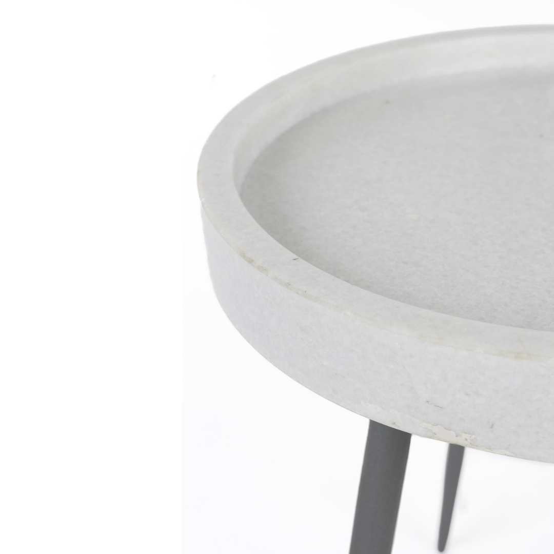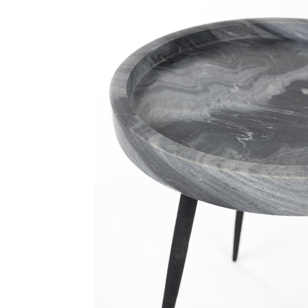 A Karrara lerakóasztal egy elegáns és praktikus szemléletben megtervezett asztal. Márvány asztallapja szemet gyönyörködtető, letisztult és organikus hatást kelt, emellett peremmel van ellátva ami rendkívül jól jöhet apró tárgyak elhelyezésekor. Fekete, vasból készült fém lába kellemes kontraszttal emeli ki a márvány természetes szépségét.