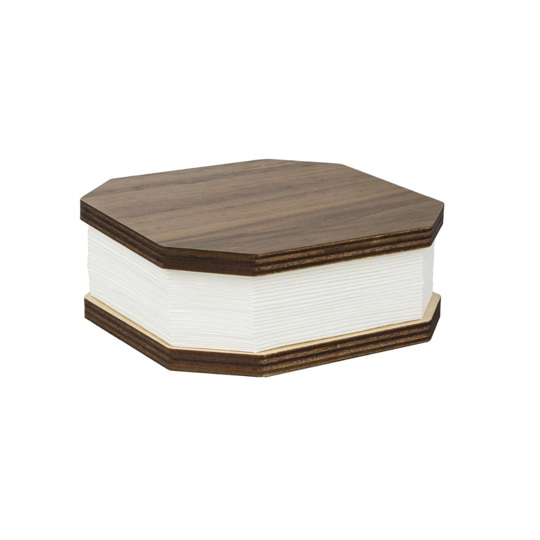 Ahogy a neve is sugallja, a Cake asztali lámpát egy sütemény ihlette. Két réteg dió színű fát fehér papír választ el egymástól – akárcsak egy pár csokis keksz egy gombóc vaníliafagylalttal. A papír lágyan szórja a fényt, meleg és hívogató ragyogást teremtve. A fa, a papír és a hangulatvilágítás keverékének köszönhetően a Cake asztali lámpa játékos, mégis modern kiegészítője lehet bármely térnek.