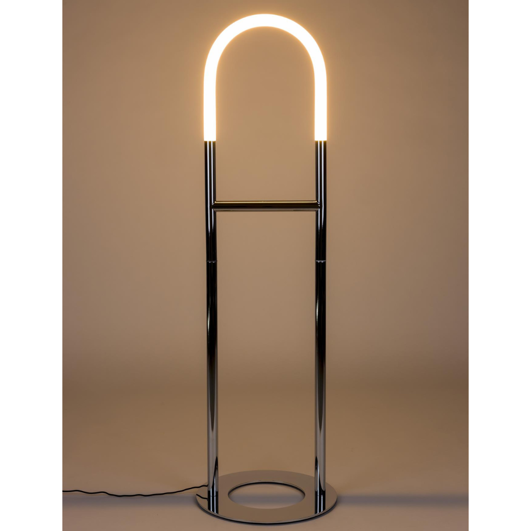 Az Arch állólámpa az ókori római építészet és a kortárs ipari formatervezés fúziója. Az olyan ikonikus építmények, mint a Pont du Gard és a Colosseum romjai ihlették, így ez a lámpa a római esztétika eleganciáját tükrözi. Tisztelgés a diadalívek előtt, a klasszikus szobrászati formákat friss, modern megjelenésbe öltöztetve. A LED-es lámpa három fényerősségi fokozatban szabályozható, és a kör alakú érintőpont megérintésével könnyen vezérelhető.